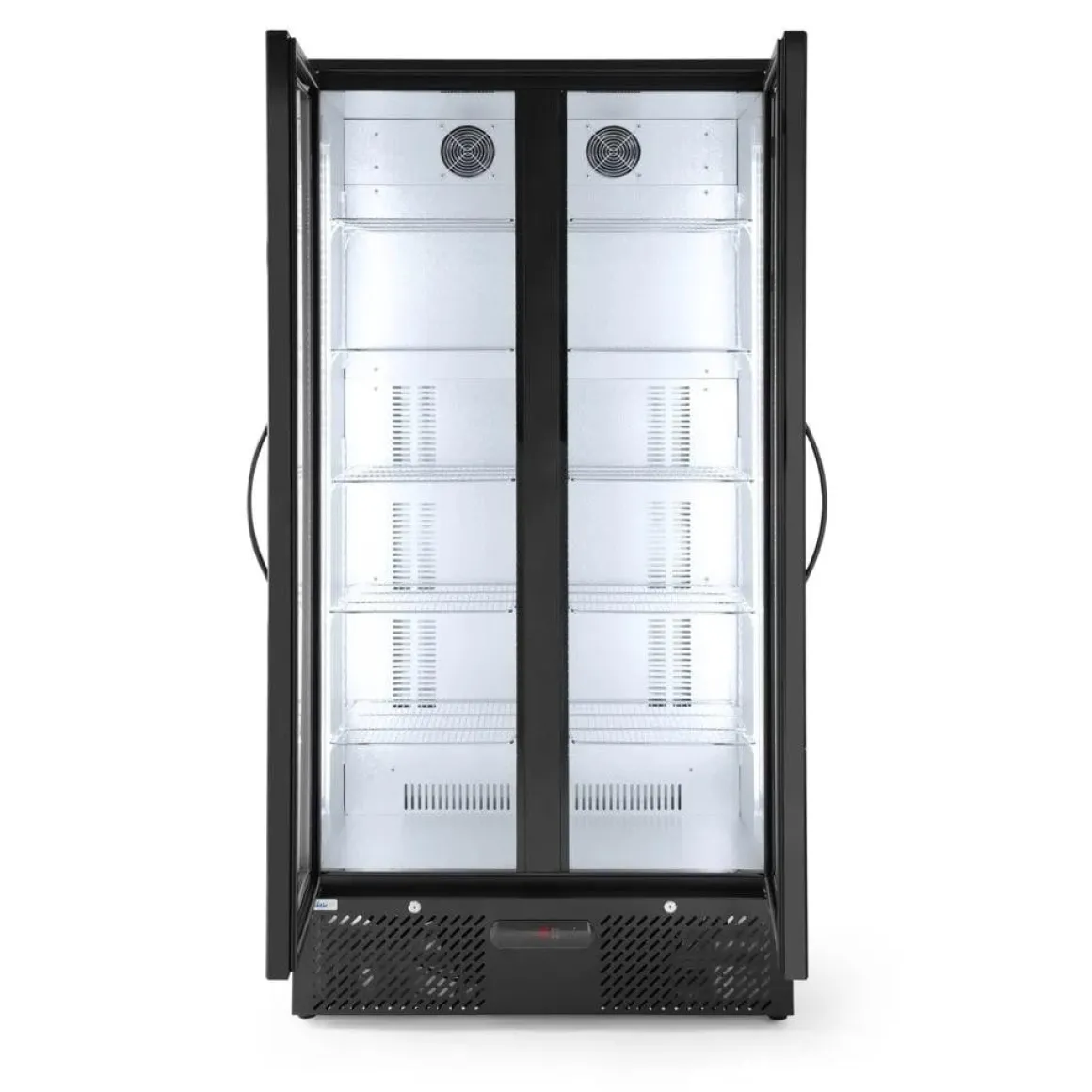 Ruime barkoelkast met deuren van gehard glas. Uitgerust met LED-verlichting om producten te presenteren.