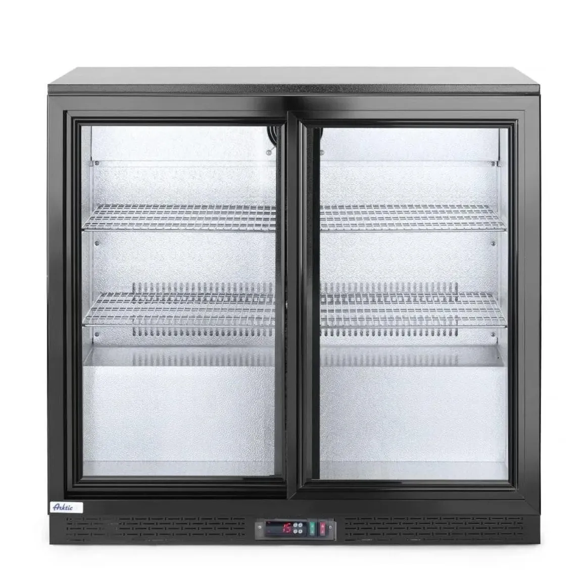 Ruime barkoelkast met deuren van gehard glas. Uitgerust met LED-verlichting om producten te presenteren.