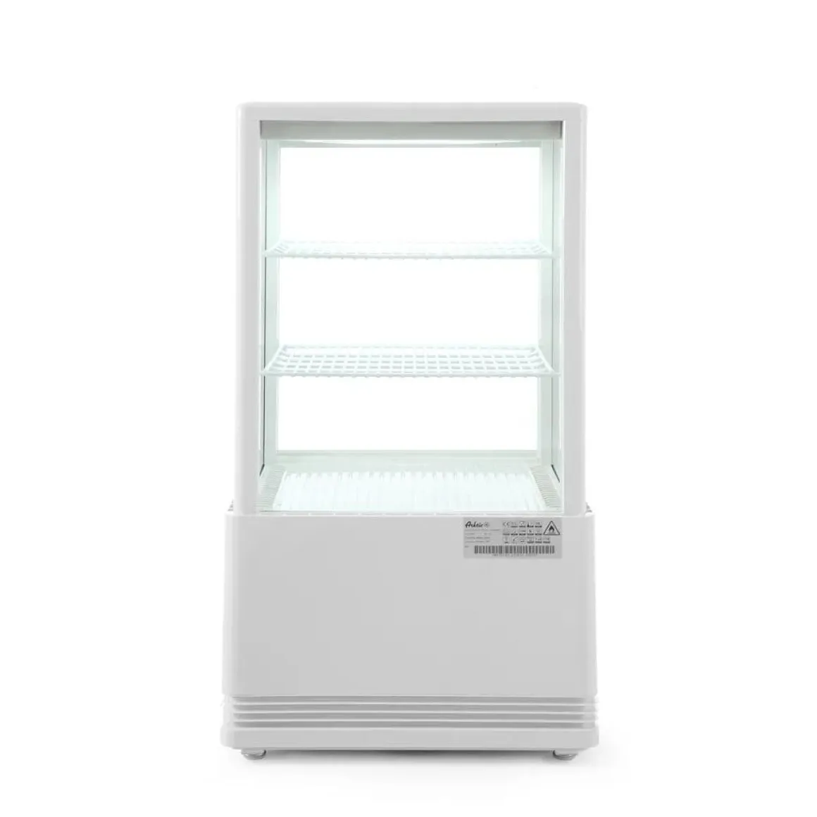 Deze uitvoering is vervaardigd uit ABS en PVC, voorzien van dubbel glas. Koelunit behuizing van ABS. Geforceerde luchtkoeling met automatische ontdooiing, compressor geplaatst onder de koelruimte. Luchtkanaal buiten het glas blaast lucht over het glas om condens te verwijderen en te voorkomen. Duurzame planken met PVC-coating, in hoogte verstelbaar. Met heldere LED-verlichting in het plafond. Digitale temperatuurregelaar en display. Klimaatklasse: 4.