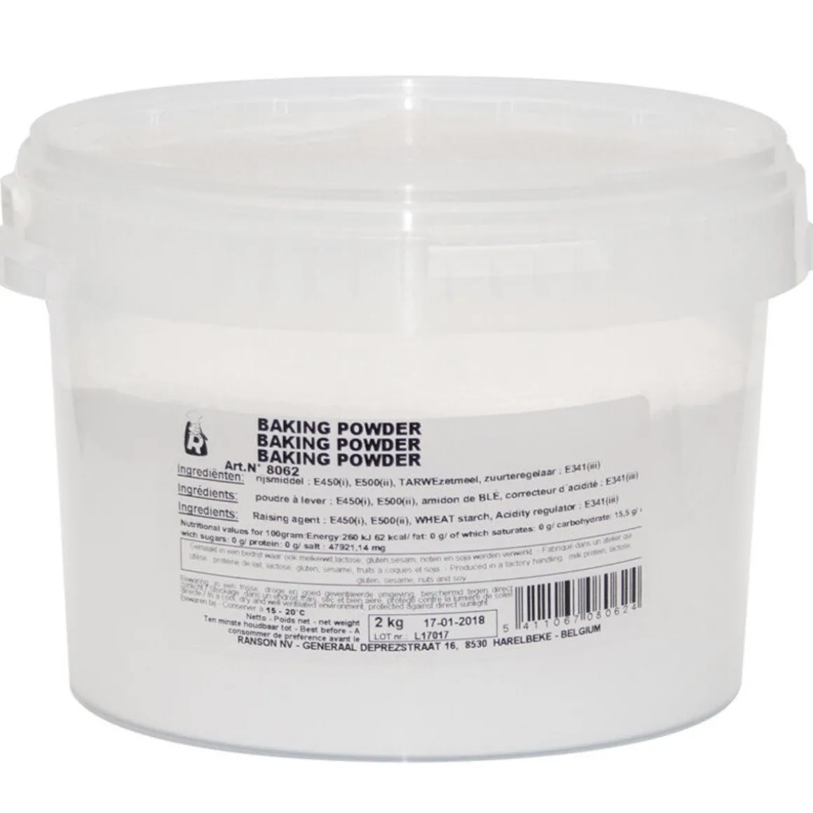 Bakpoeder is een onmisbaar product voor alle bakfanaten. Hiermee krijg je namelijk een luchtig deeg, essentieel om bijvoorbeeld een luchtige cake te bakken. De bakpoeder 2kg komt in een handig hersluitbaar emmertje, waardoor deze perfect is om op voorraad te hebben. In de emmer zit 2 kilogram, dat is genoeg voor het maken van veel verschillende baksels.