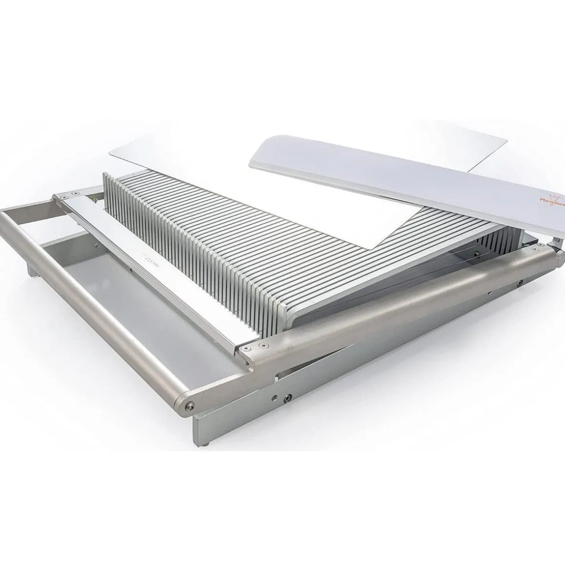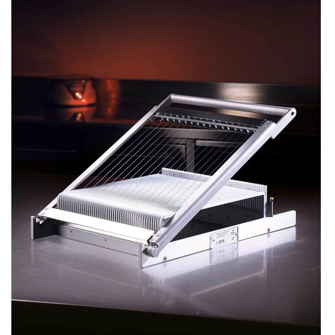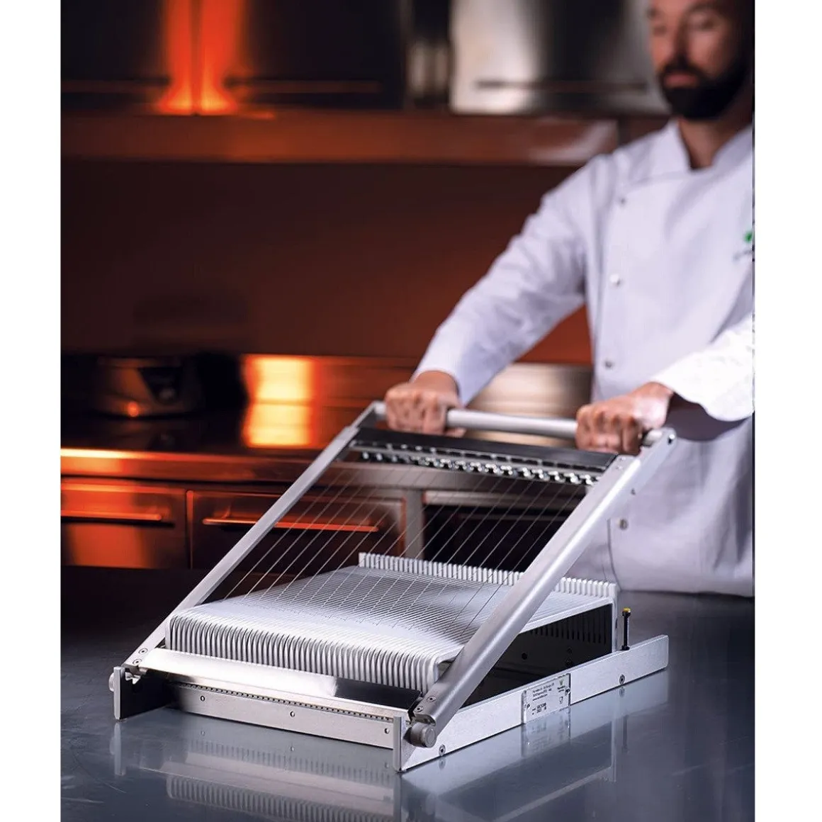 Vernieuwd bonbonsnijapparaat van het merk Martellato vervaardigd uit aluminium. Dit solide snijraam kan gebruikt worden voor bonbons, deeg, vruchtenblokjes, etc. Met het snijapparaat kun je zeer nauwkeurig en efficiënt produceren. De vernieuwde structuur is ontworpen om de snijhoek te vergroten en geeft meer mechanische kracht zodat de inspanning beperkt blijft. De grotere basis zorgt voor meer stabiliteit bij het snijden. Deze set wordt geleverd met 3 verschillende snijramen, waardoor je een enorm scala aan producten kunt snijden.