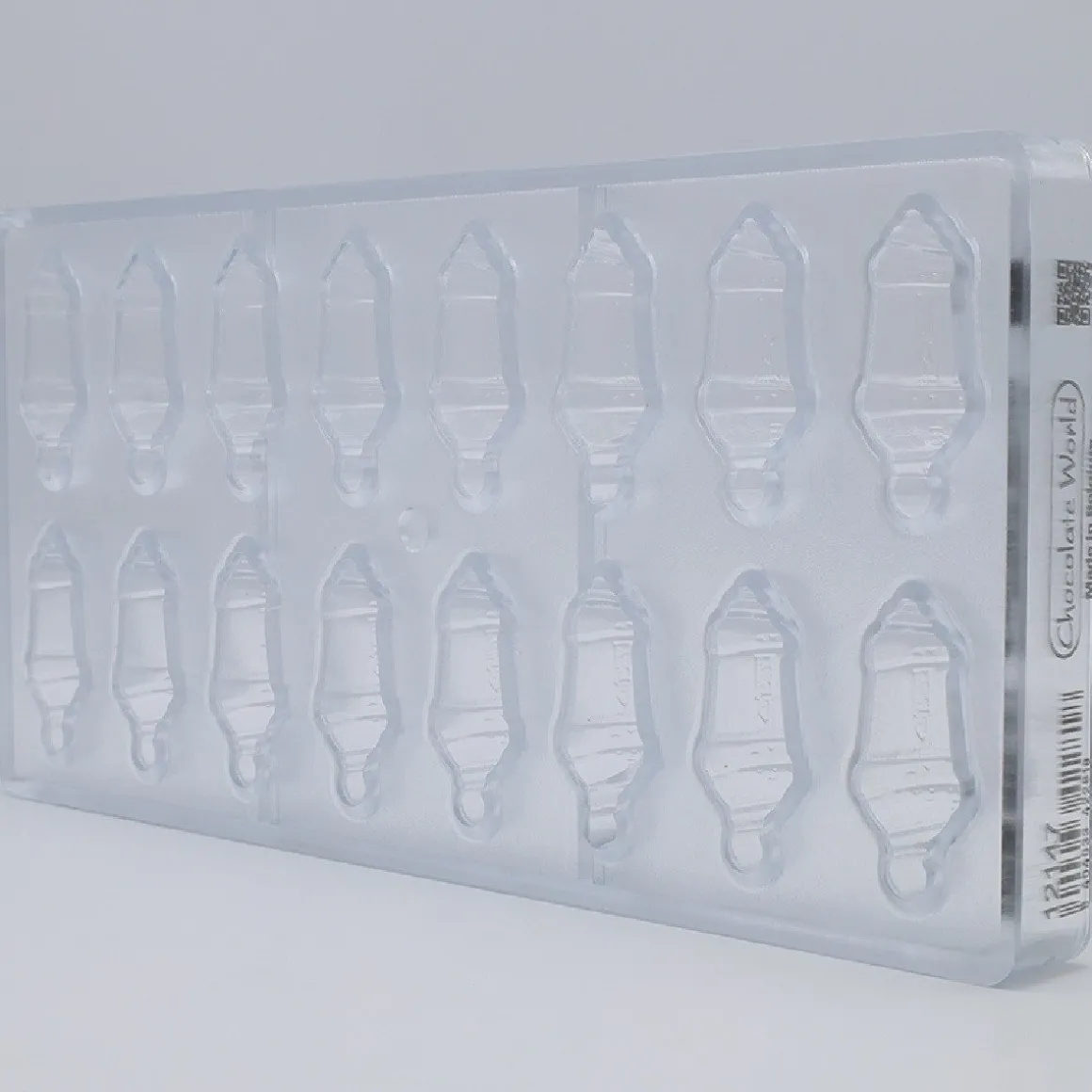 Met de Bonbonvorm Chocolate World Lantaarn (16x) 49x21x20mm kun je prachtige én lekkere bonbons creëren in de vorm van een lantaarn. De lantaarn heeft gedetailleerde versiersels en de mal is perfect om verrassende chocolaatjes mee te maken. De bonbons kunnen gevuld worden met allerlei vullingen, zoals caramel, notenpasta’s of fruitige vullingen.