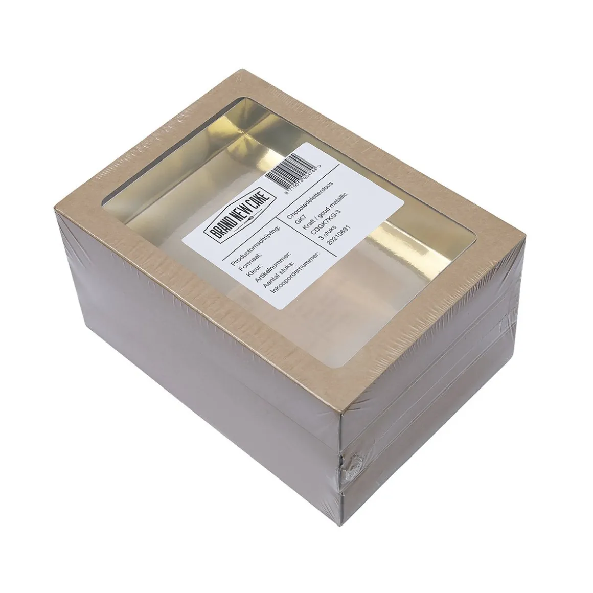 In deze chocoladeletterdoos GK-7 past precies een chocoladeletter van 200 gram. Verpak je zelfgemaakte chocoladeletters in deze luxe letterdoos. Deze chocoladeletterdoos bestaat uit twee delen: de doos zelf (met glimmende goudkleurige binnenkant) en een kraft/bruine schuifhuls (met transparant venster).