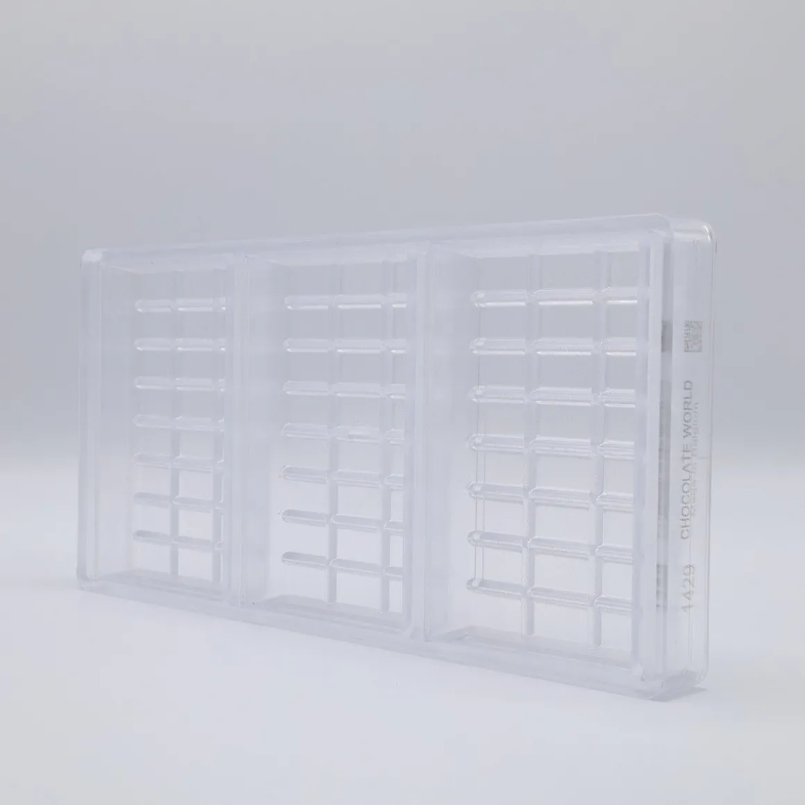 De Chocolademal Chocolate World Tablet (3x) 124x77x20mm is ideaal voor chocolade liefhebbers. De mal heeft een klassieke vorm van een tablet. Met de vorm kun je 3 repen tegelijk maken. Elke chocoladereep heeft een lengte van 12,4 centimeter met een breedte van 7,7 centimeter.
