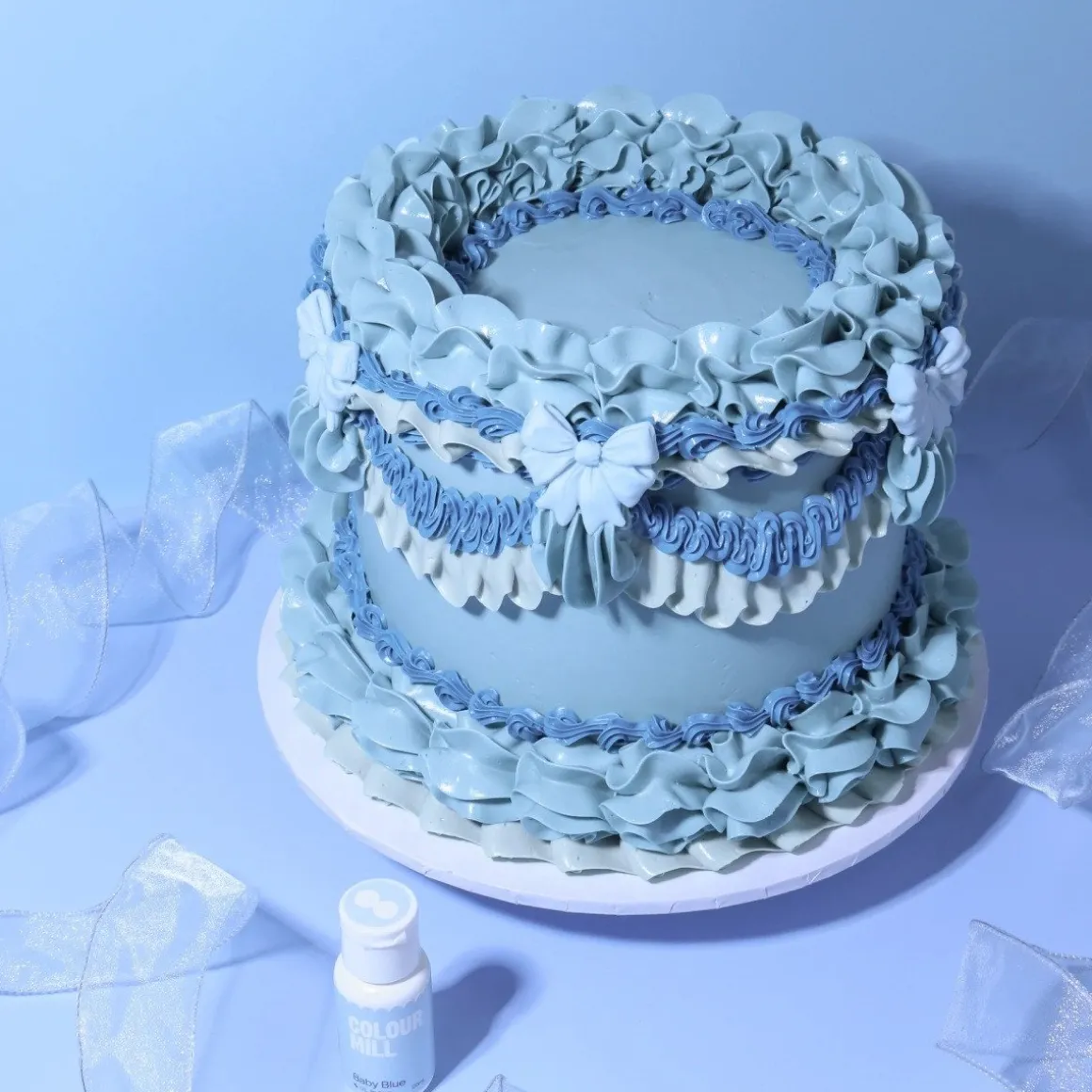Met de Colour Mill Kleurstof Oil Blend Baby Blue 100ml breng je een frisse, zachte blauwtint aan in al je baksels. Deze kleurstof is volledig op oliebasis en mengt daardoor perfect met vetrijke ingrediënten zoals botercrème, fondant, cakebeslag en chocolade. Het resultaat is een heldere, egale kleur zonder strepen of ongelijkmatige tinten.