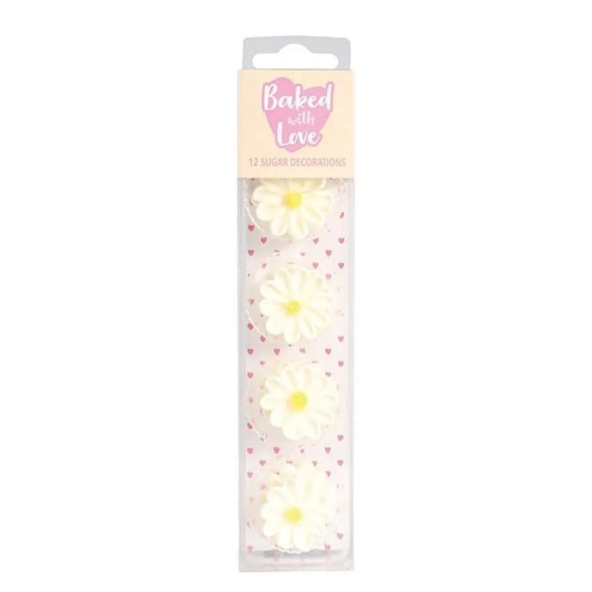 Schattige suikerdecoratie in de vorm van madeliefjes. Perfect voor het decoreren van taarten, muffins en (cup)cakes in het voorjaar.