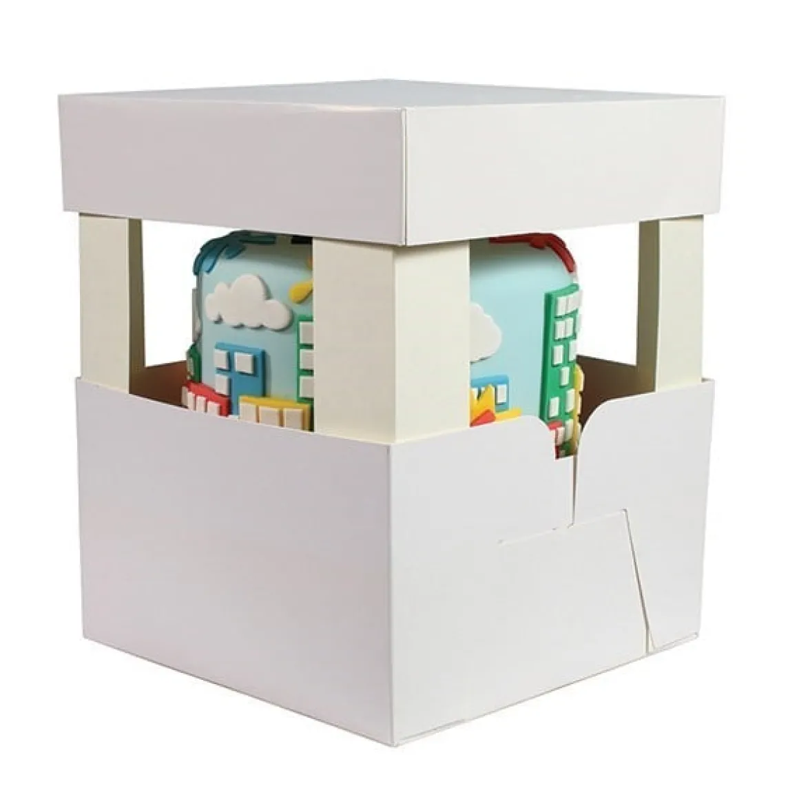 Een prachtige hoge taart gemaakt maar past deze net niet in de doos? Met deze verhogingshoeken is dit probleem verholpen. De verhogers hebben een mooie vouw hoek waardoor ze perfect in een taartdoos passen. De hoeken kunnen makkelijk kleiner geknipt worden zodat de doos iets lager wordt.