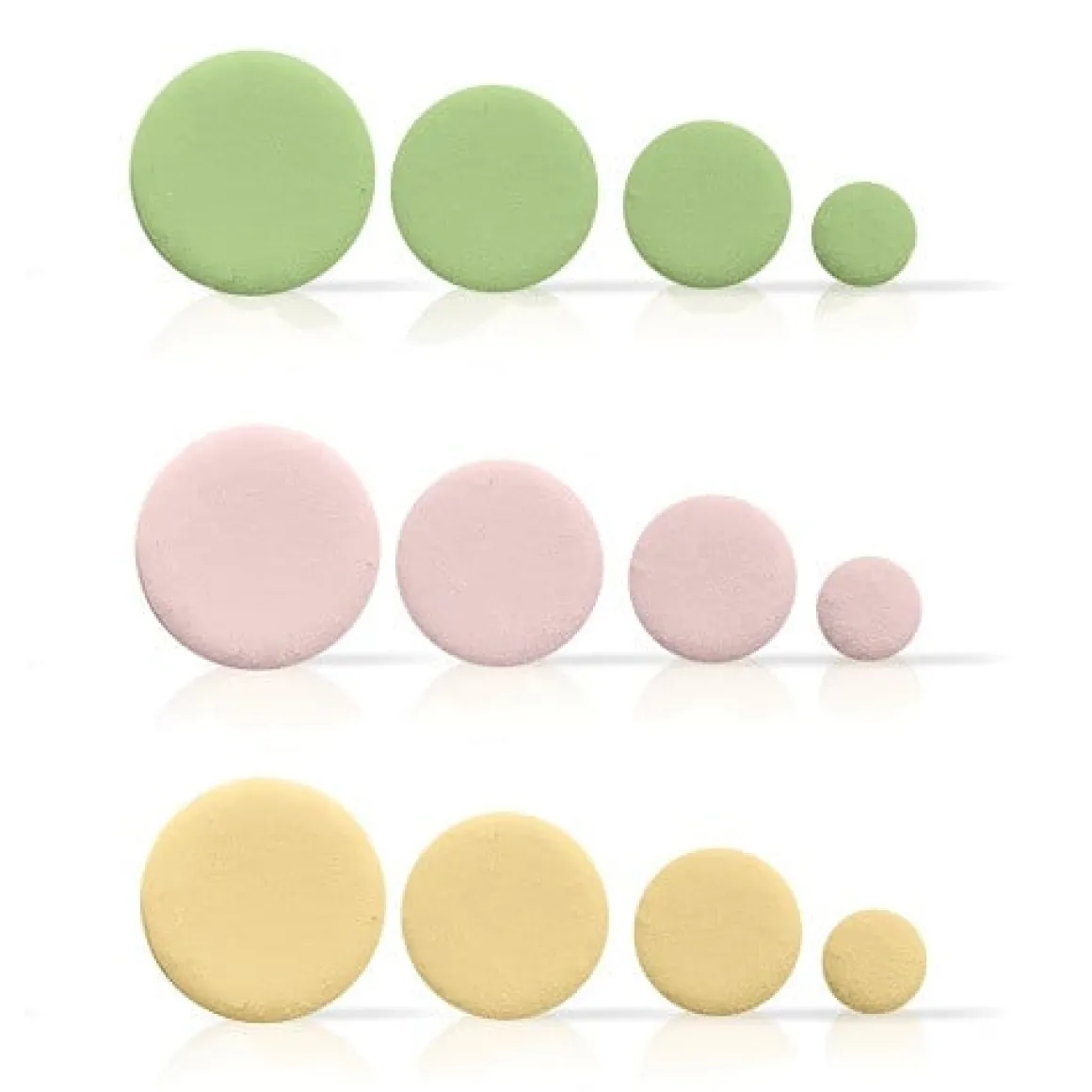 Handgemaakte decoratie (van echte Belgische chocolade). Er zitten 4 verschillende maten in één doos. En 3 verschillende kleuren (pastel groen, pastel roze en pastel geel). Dit artikel is ideaal te gebruiken als ondersteuning voor gebak, taart of dessert. Uiteraard ook zeer geschikt ter decoratie.