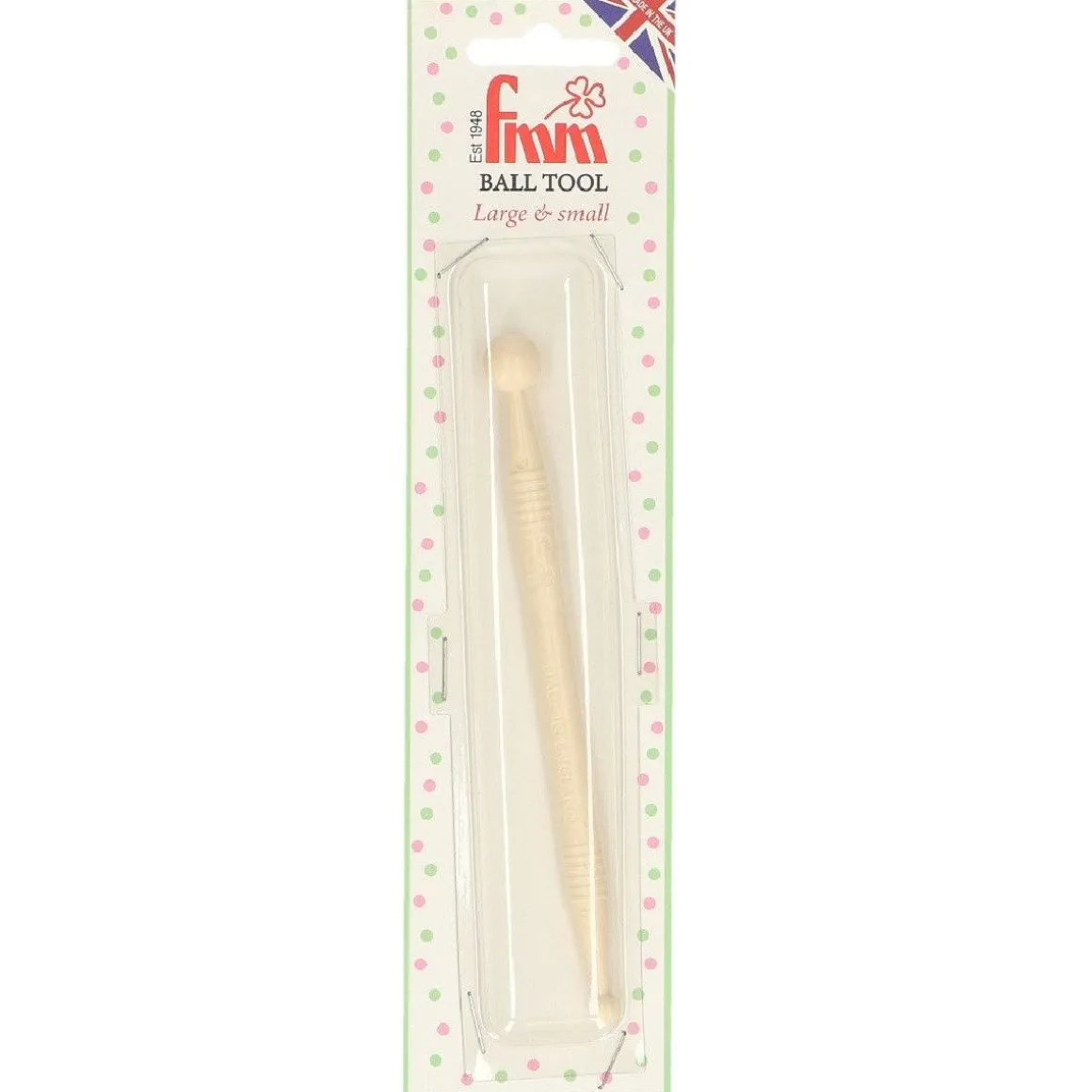 De FMM Modelleer Tool Bollen Groot en Klein is een handig hulpmiddel voor het verfijnen van fondant en marsepein decoraties. De tool heeft bollen aan beide kanten. Een zijde heeft een grote bol van circa 1,3 centimeter en de andere zijde heeft een bol met een afmeting van ongeveer 0,6 centimeter.