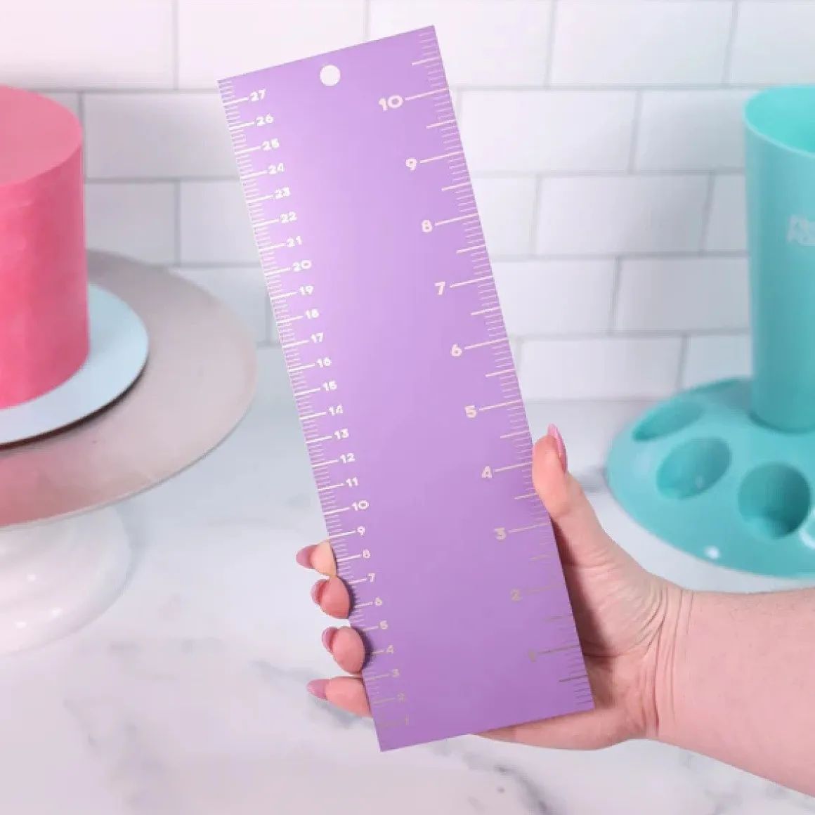 Overigens is deze geweldig in combinatie met de Frost Form coating kits. Natuurlijk ook los prima te gebruiken om botercrème of ganache te verdelen. De schraper heeft een lengte van 27,9 centimeter.