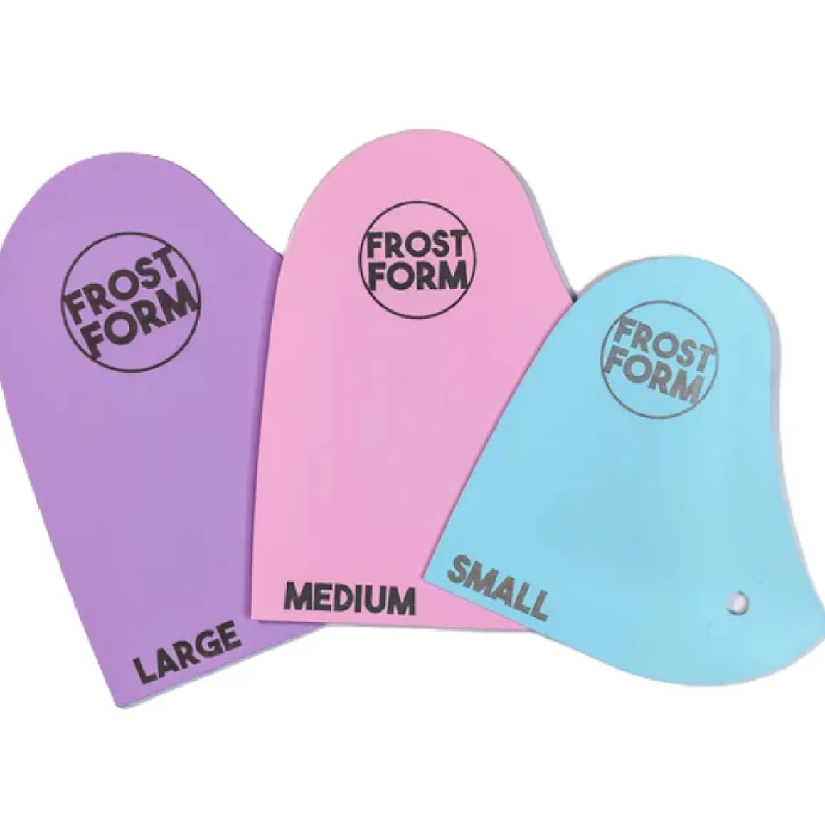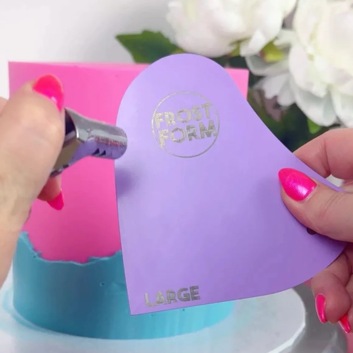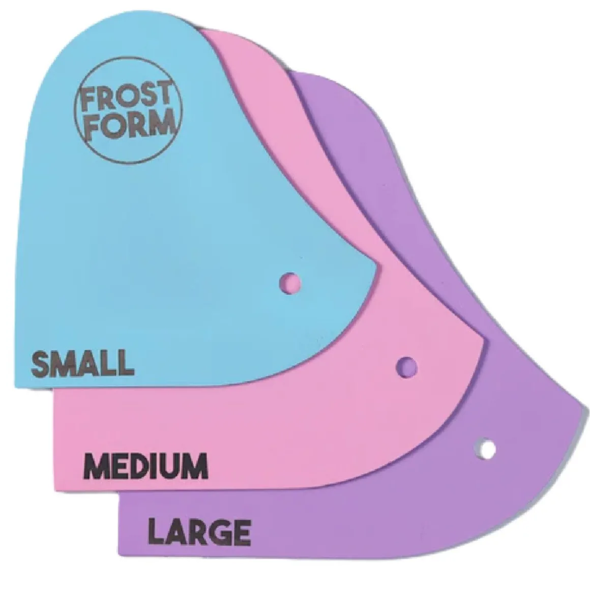 Met de Frost Form Schraper Set/3 geef je je taarten een strakke en gelijkmatige afwerking. De set bestaat uit 3 schrapers met dezelfde vorm, elk in een andere maat. Iedere schraper heeft 3 zijden met verschillende randen. Ideaal om naden glad te strijken, hoeken netjes bij te werken of kleine oneffenheden te corrigeren.