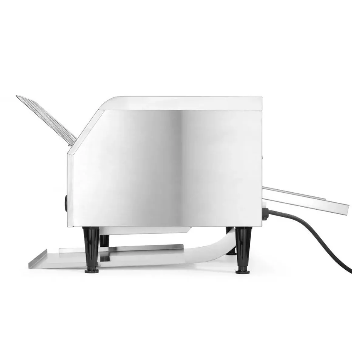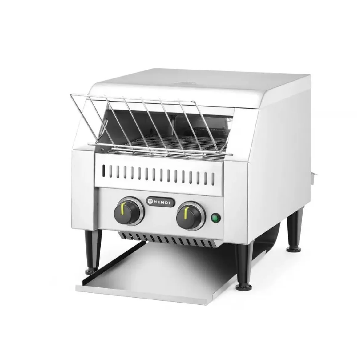 Twee rijen sneetjes passen naast elkaar op de loopband. Voorzien van twee aparte elementen. Uitermate geschikt om te gebruiken bij het doorlopend roosteren van sneetjes brood. Met opvangbak voor en achteren. Instelbare doorlooptijd tot 3 minuten.