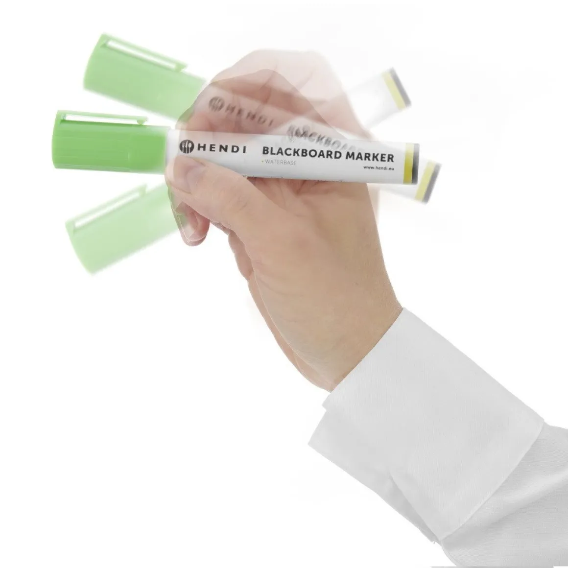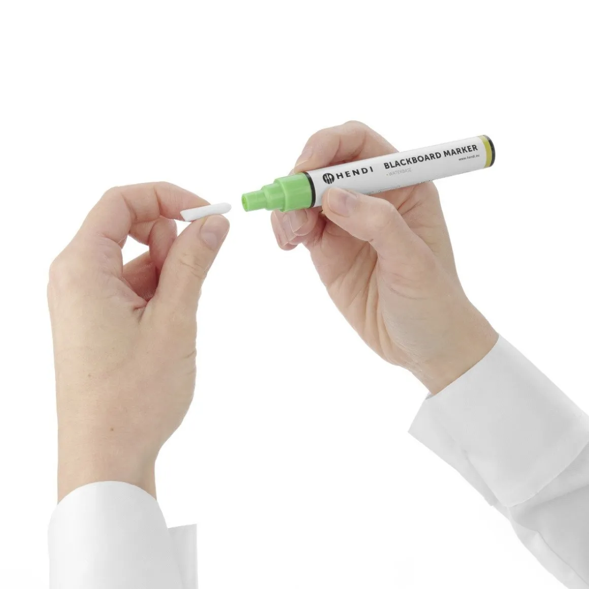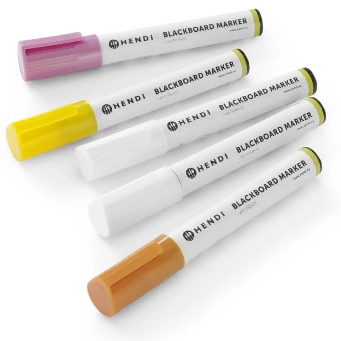 5 krijtstiften met schuine punt van het merk Hendi. Deze stiften zijn geschikt voor het schrijven op krijtborden.