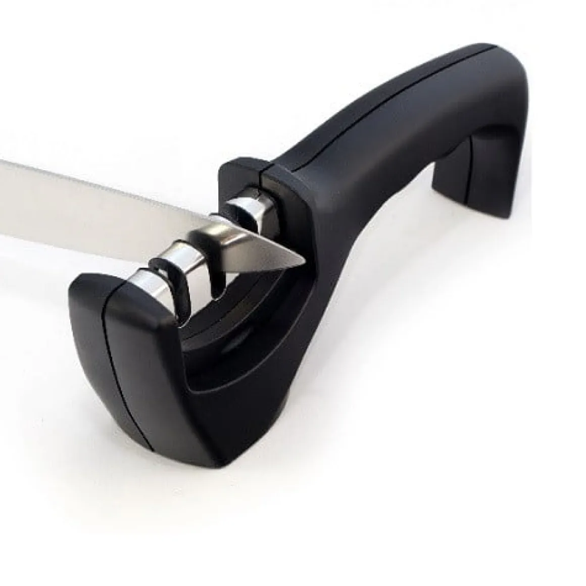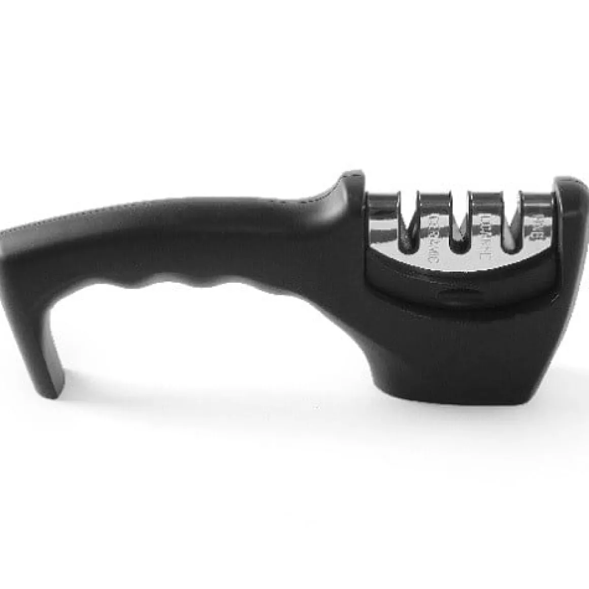 Met deze handige messenslijper van het merk Hendi houd jij jouw messen vlijmscherp! De messenslijper is voorzien van een ergonomische handgrepen en een antislip voet voor een veilig en comfortabel gebruik. Daarnaast beschikt hij over 3 functies voor het slijpen van van diverse messen (ook keramische).