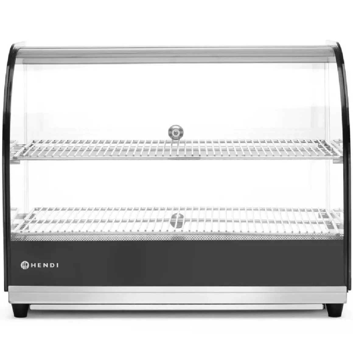 De Hendi Opzet Warmhoudvitrine Tweelaags is een warmhoudvitrine, die een gebogen glazen front heeft en een roestvrijstalen behuizing. Aan de achterkant zit een grote glazen deur die toegang geeft tot de binnenruimte. Verder zit er een uitneembaar kruimelrooster in, waardoor de vitrine makkelijk schoon te maken is. Er worden 2 fijnmazige GN 1/1 roosters bijgeleverd.