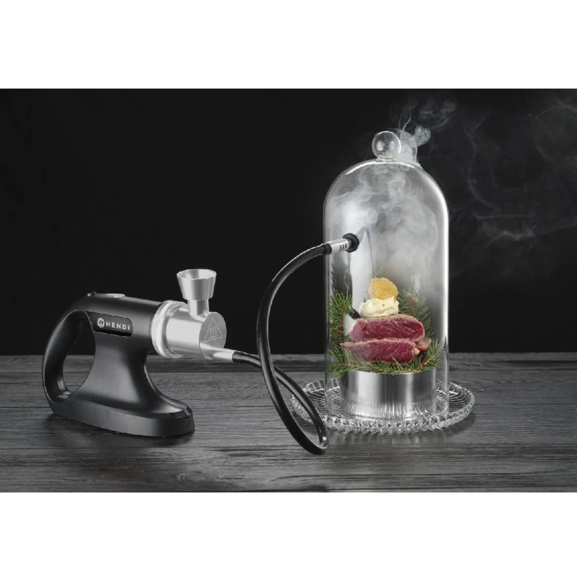 Met Hendi Rookpistool Oplaadbaar geef je extra smaak aan jouw gerechten of cocktails. Je kan het rookpistool gebruiken bij het bereiden vlees, vis en groente gerechten. Zelfs delicaat voedsel kan gerookt worden. Het koude rook geeft een lekkere smaak, maar verandert niet de textuur of temperatuur van het voedsel. Het rookpistool bevat 3 snelheden rook.