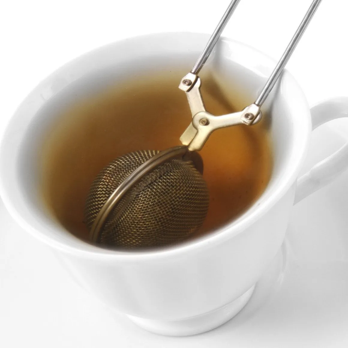 De zeef opent eenvoudig door in het handvat te knijpen, wat zorgt dat deze praktisch in gebruik is. Met een doorsnede van 4,5 centimeter is hij perfect voor het zetten van een kop thee. Ook handig voor het trekken van kruiden in bouillon of water.