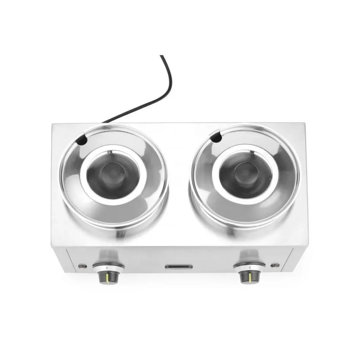 Het HENDI Thermosystem 2 houdt hete sauzen, soepen en andere voedingsmiddelen op de gewenste temperatuur zonder te branden. De temperatuur kan op 6 niveaus worden ingesteld. De duurzame constructie is uitgerust met anti-slipvoeten voor stabiliteit.