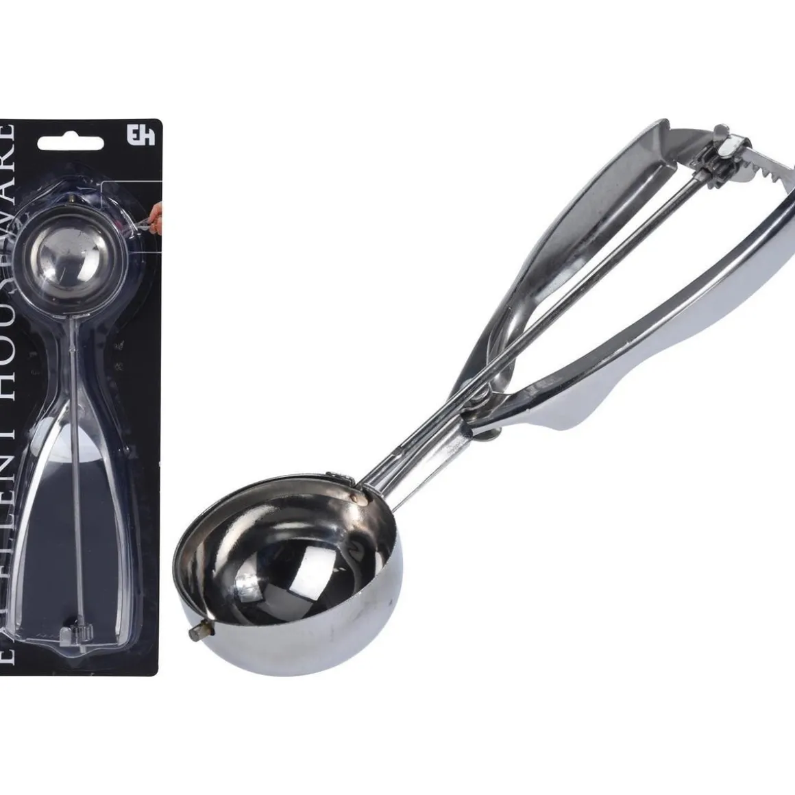 IJsschep met een veermechanisme waardoor het ijsbolletje makkelijk uit de schep komt. De ijsschep is gemaakt van RVS.