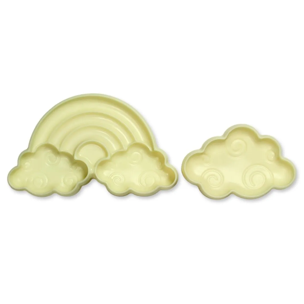 Krijg jij ook altijd een vrolijk gevoel bij het zien van een regenboog? Maak ze dan eens op je taart. Dat kan met deze handige uitsteker/mal. Hiervoor gebruik je fondant, gum paste of moddeling paste. Wij hebben fondant in alle kleuren van de regenboog dus dat komt helemaal goed! Maak er eventueel nog wolkjes bij (ook hiervoor hebben we een uitsteker). Het is helemaal af met gouden strooisel!