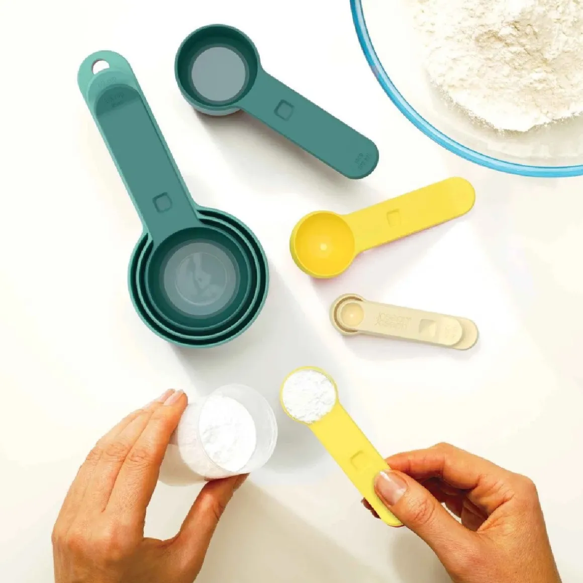 Bak je regelmatig Amerikaanse recepten? Dan is de Joseph Joseph Maatcups Set/8 ideaal. Vaak heb je geen weegschaal nodig bij Amerikaanse recepten, maar cups. Deze set bevat alles van 1/4 theelepel tot een hele cup. Tevens zijn ze makkelijk in elkaar te stapelen, dus dat scheelt ook weer ruimte in de kast.