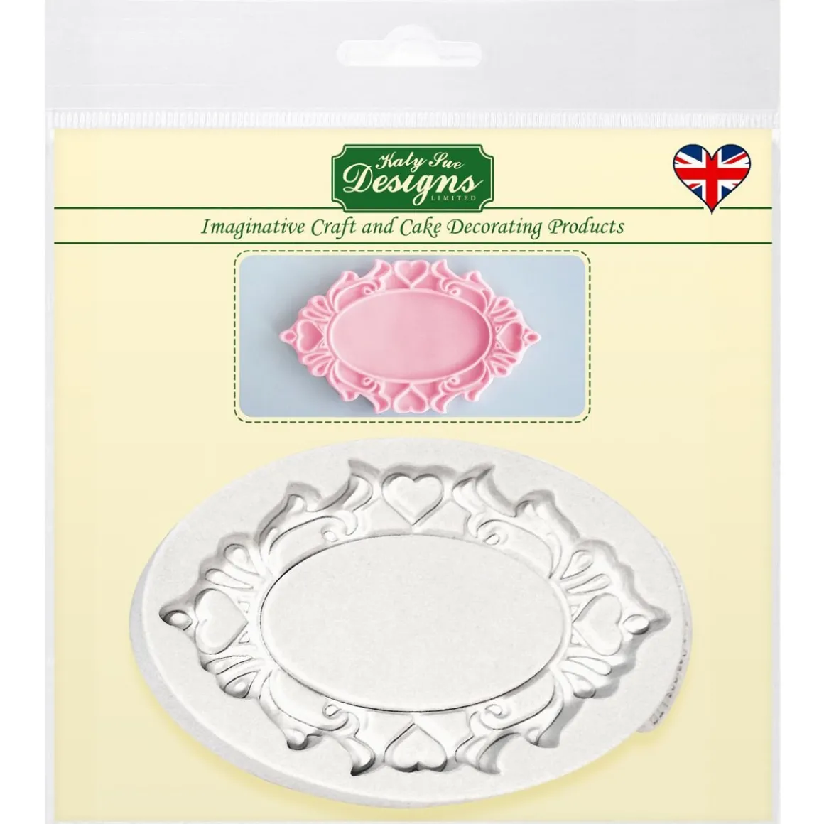 Deze Katy Sue mold is ideaal voor het maken van leuke ovalen plaatjes! Gebruik de plaque voor het decoreren van taarten, cupcakes en meer. Het fijn gedetailleerde ontwerp van de mold zorgt ervoor dat je iedere keer weer een perfect resultaat hebt.