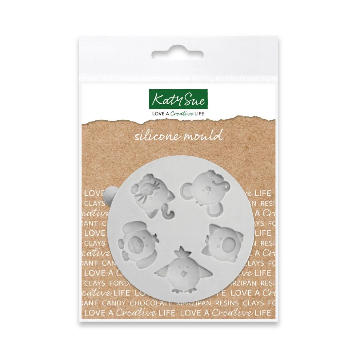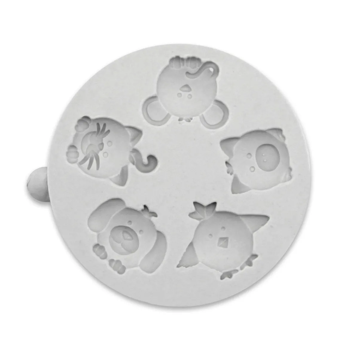 Mold van schattige mini dieren met een kip, hond, varken, kat en een muis.