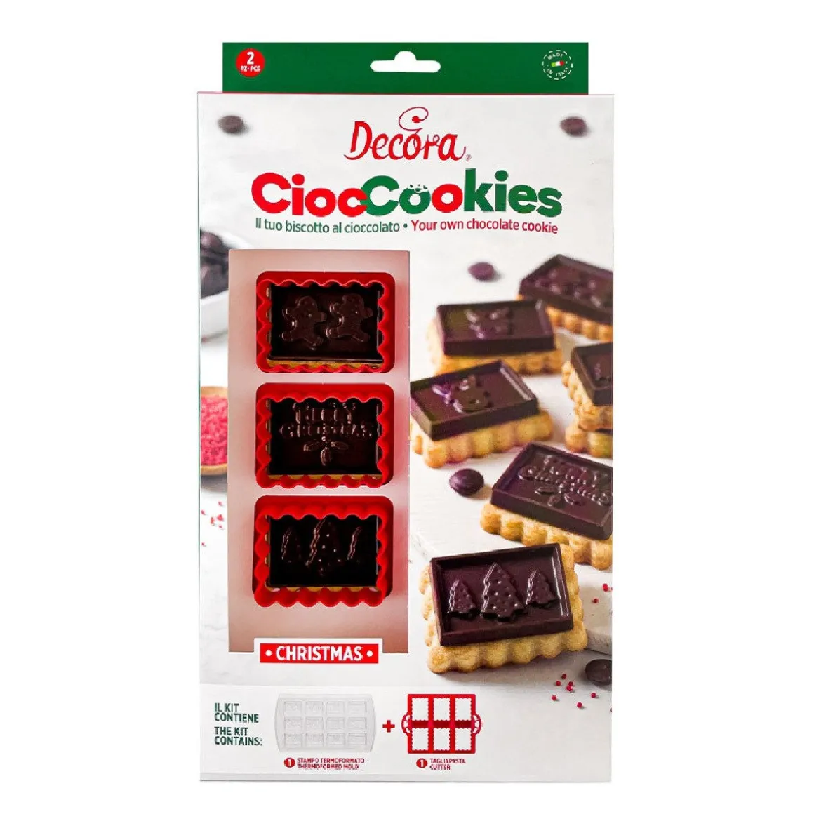 Deze 2-delige set is ideaal om makkelijk koekjes te maken met een kerst chocoladefiguurtje erop. De set bevat een plastic uitsteker met handige handgrepen, waarmee je eenvoudig de koekjesbodem maakt. Daarnaast zit er een mal bij waarmee je kerst chocolaatjes maakt die perfect op de koekjes passen.