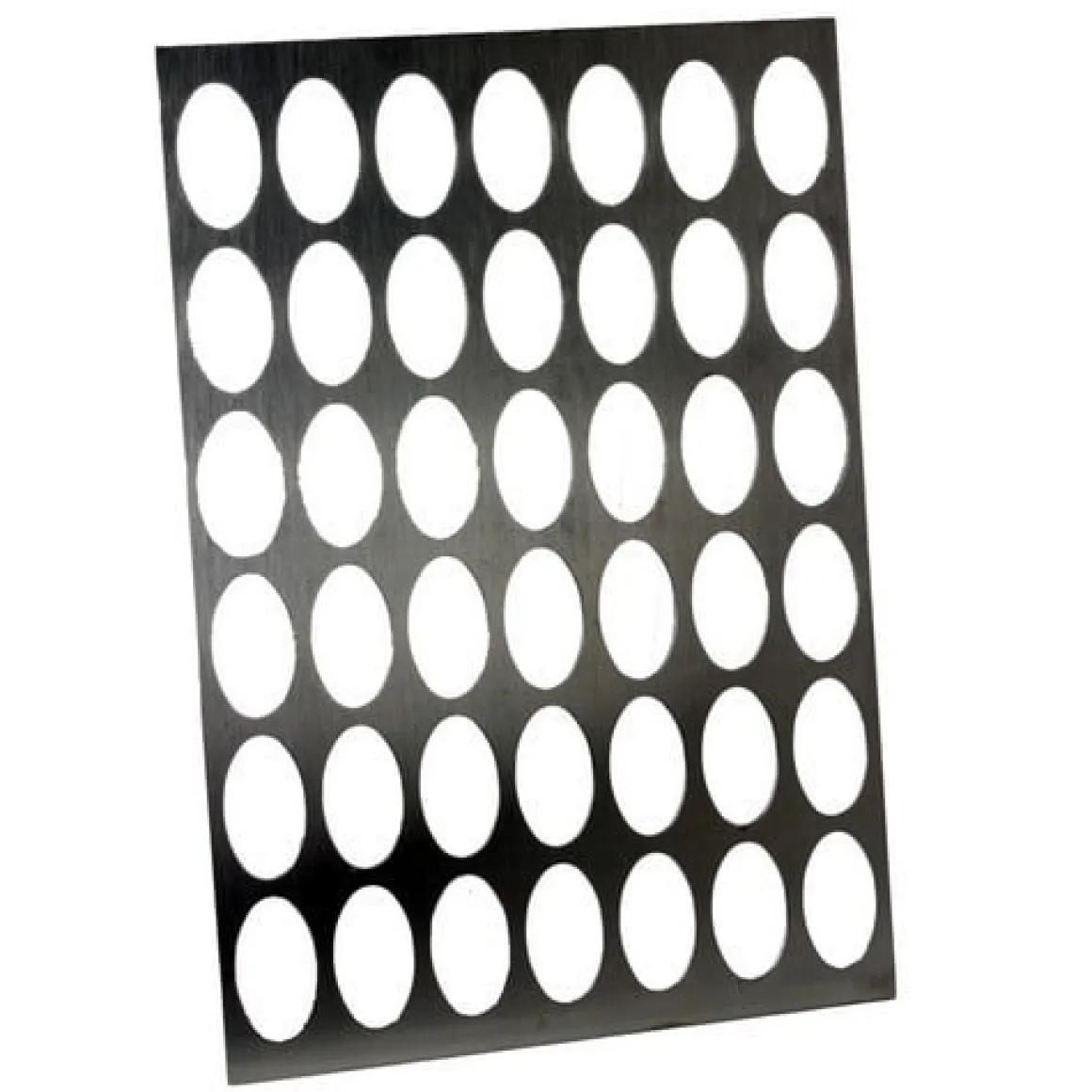 Het sjabloon bevat 7×6 ovalen met een afmeting van 4×2,3cm en heeft een dikte van 1,5mm.