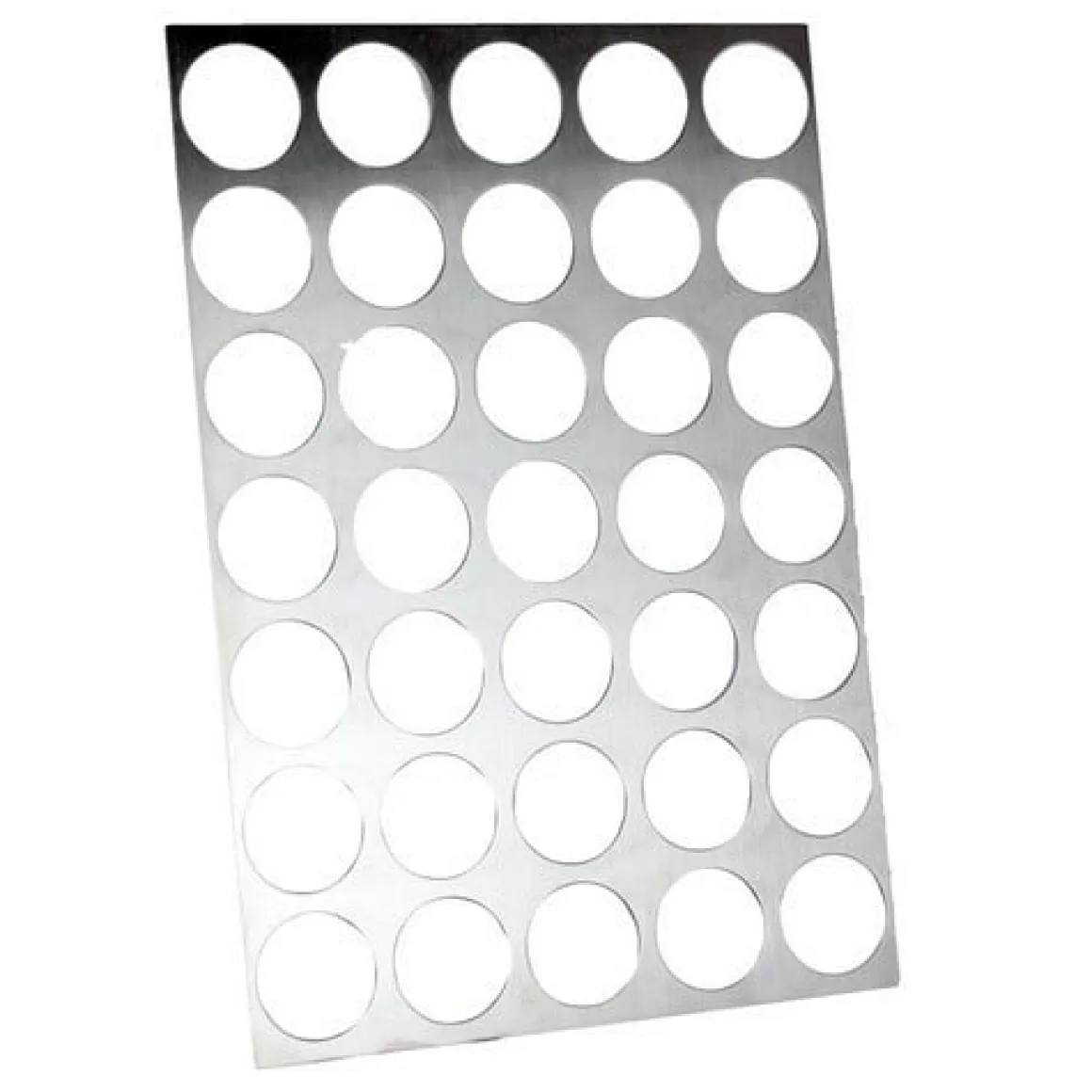Het sjabloon bevat 5×7 rondjes met een afmeting van 3,5cm doorsnede en heeft een dikte van 1,5mm.