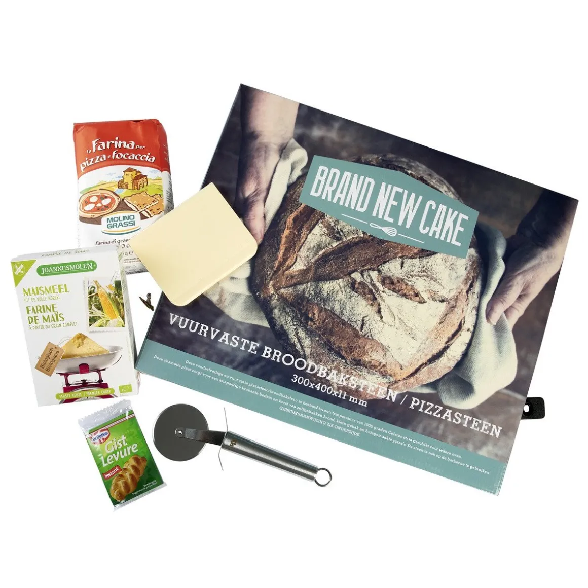 In dit pakket wordt stap voor stap uitgelegd hoe je een pizzadeeg maakt en hoe deze vervolgens gebakken moet worden. Voor het deeg zit het bloem, gist, en maïsmeel inbegrepen. Daarnaast krijg je in de pakket ook een pizzasteen, een deegkrabber en een pizzasnijder. Als het tijd is om te bakken kun je na wens de pizza beleggen.