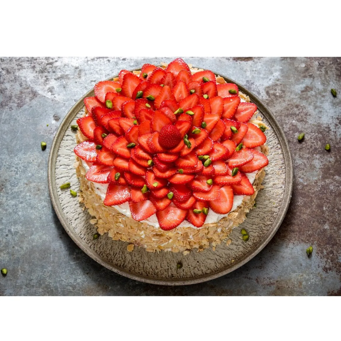 Maak zelf een heerlijke slagroomtaart met het basis Slagroomtaart-pakket van Baktoaal. Deze set bevat bijna alles wat je nodig hebt om twee overheerlijke aardbeien-slagroomtaarten te maken. De aarbeien-slagroomtaart is zo al lekker, maar je kunt er ook nog meer fruit en decoraties aan toevoegen. Geef je taart mooie toeven en vul deze op met lekkere aarbeien, bessen, frambozen, stukjes kiwi, chocolade, noten en/of andere heerlijke decoraties.