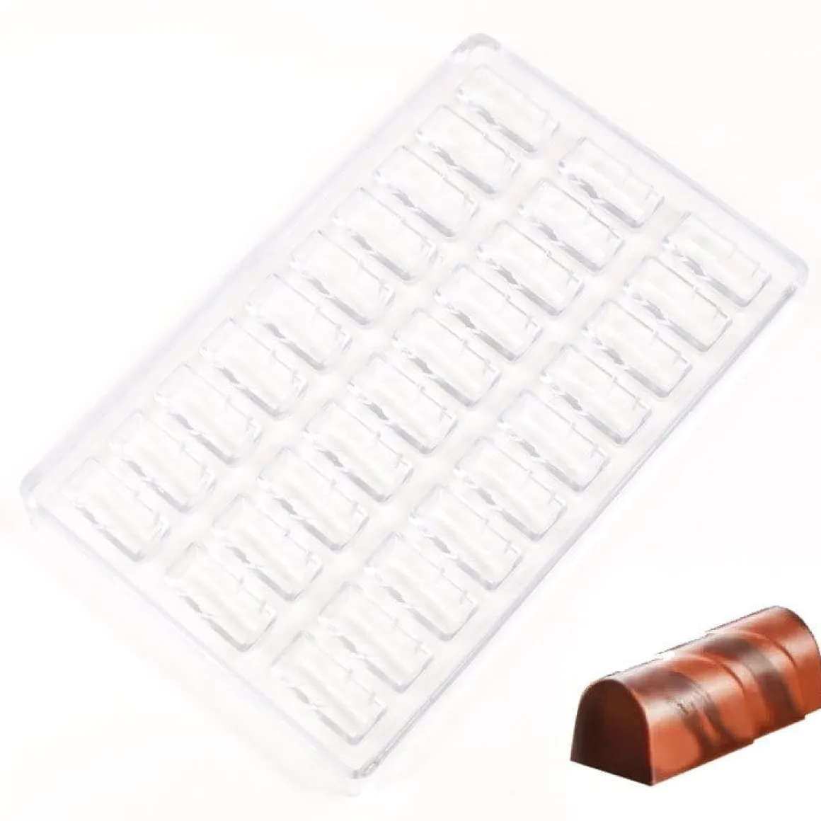 De bonbonvorm, waar er 30 inzitten heeft een afmeting van 27,5×17,5×2,5cm (LxBxH) en is gemaakt van onverwoestbaar polycarbonaat.