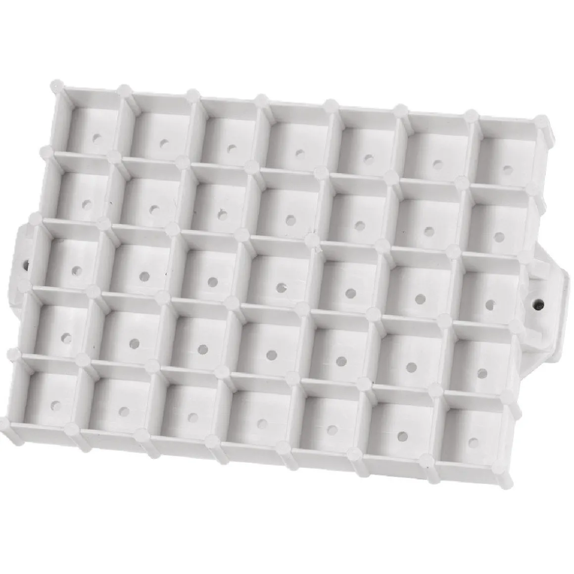 De Martellato Broodstempel Vierkant Schildpad 14x10cm is een stevige kunststof vorm met een raster van vierkante vakken en kleine openingen in het midden. Deze structuur geeft het deeg een patroon dat lijkt op het schild van een schildpad. De vorm is ontwikkeld om decoratieve afdrukken op brood of andere deegproducten aan te brengen.
