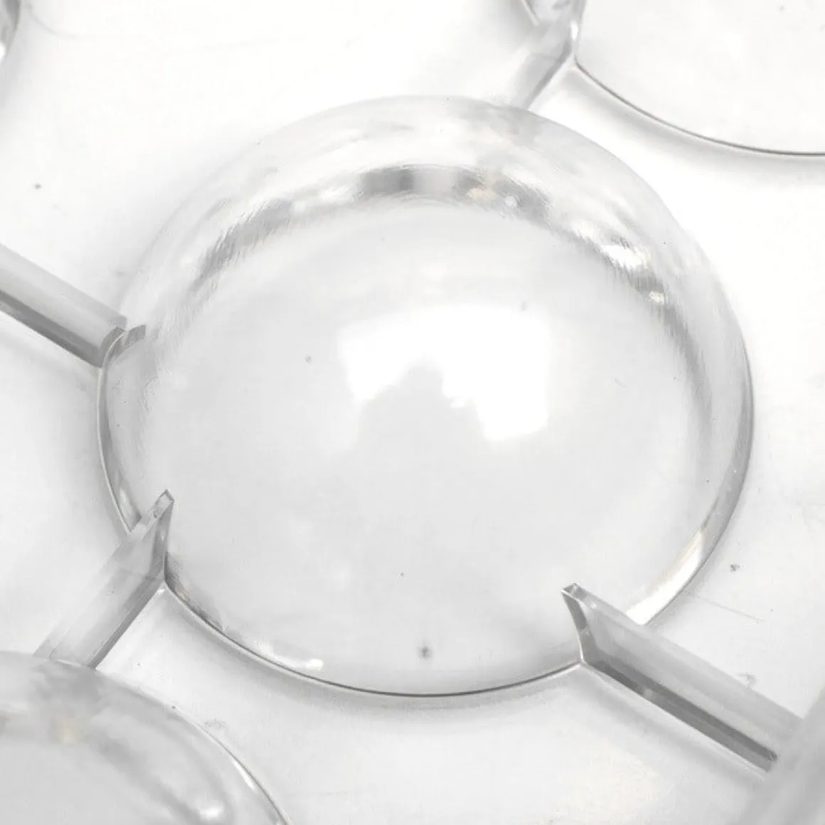 Deze vorm is heel leuk om halve bollen te maken. De rondjes hebben een doorsnede van 5 cm. Met 1 mal kan je 8 halve rondjes maken. Deze chocoladevorm is gemaakt van het zeer sterke materiaal polycarbonaat. Elke halve bol heeft een gewicht van ongeveer 15 gram.