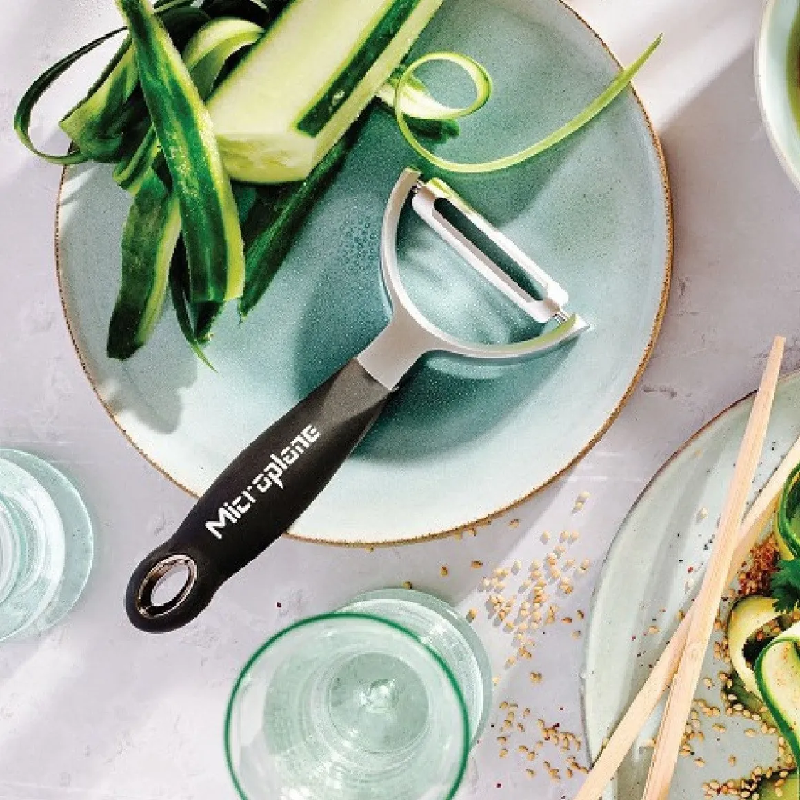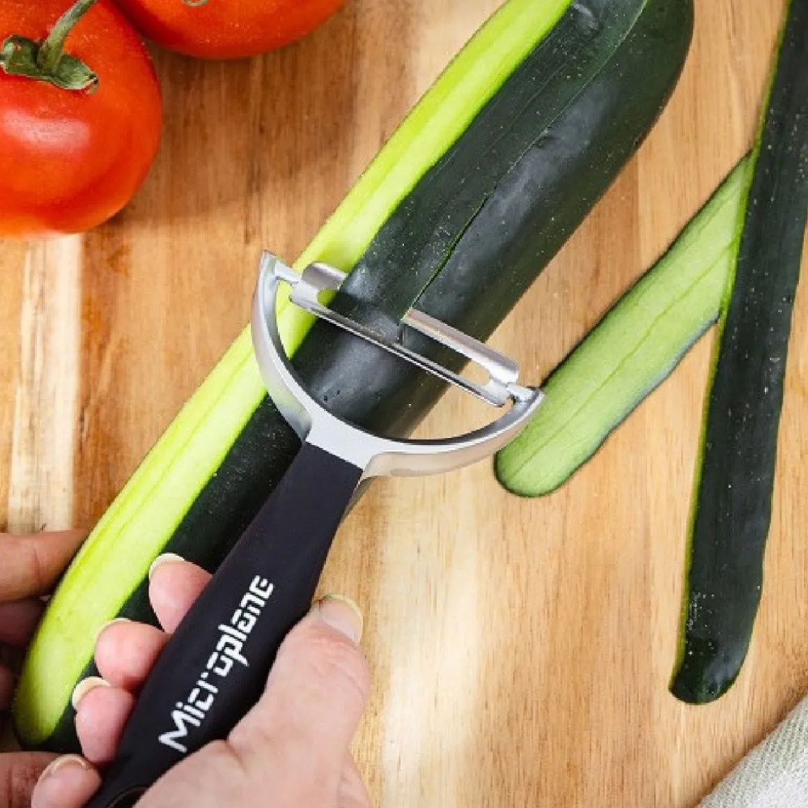De Microplane Dunschiller Y-model is een super scherpe dunschiller, die je voor verschillende etenswaren kunt gebruiken. Schil bijvoorbeeld je aardappels in een mum van tijd. Ook geschikt voor diverse andere groenten en fruit, zoals courgette, wortel of appel.