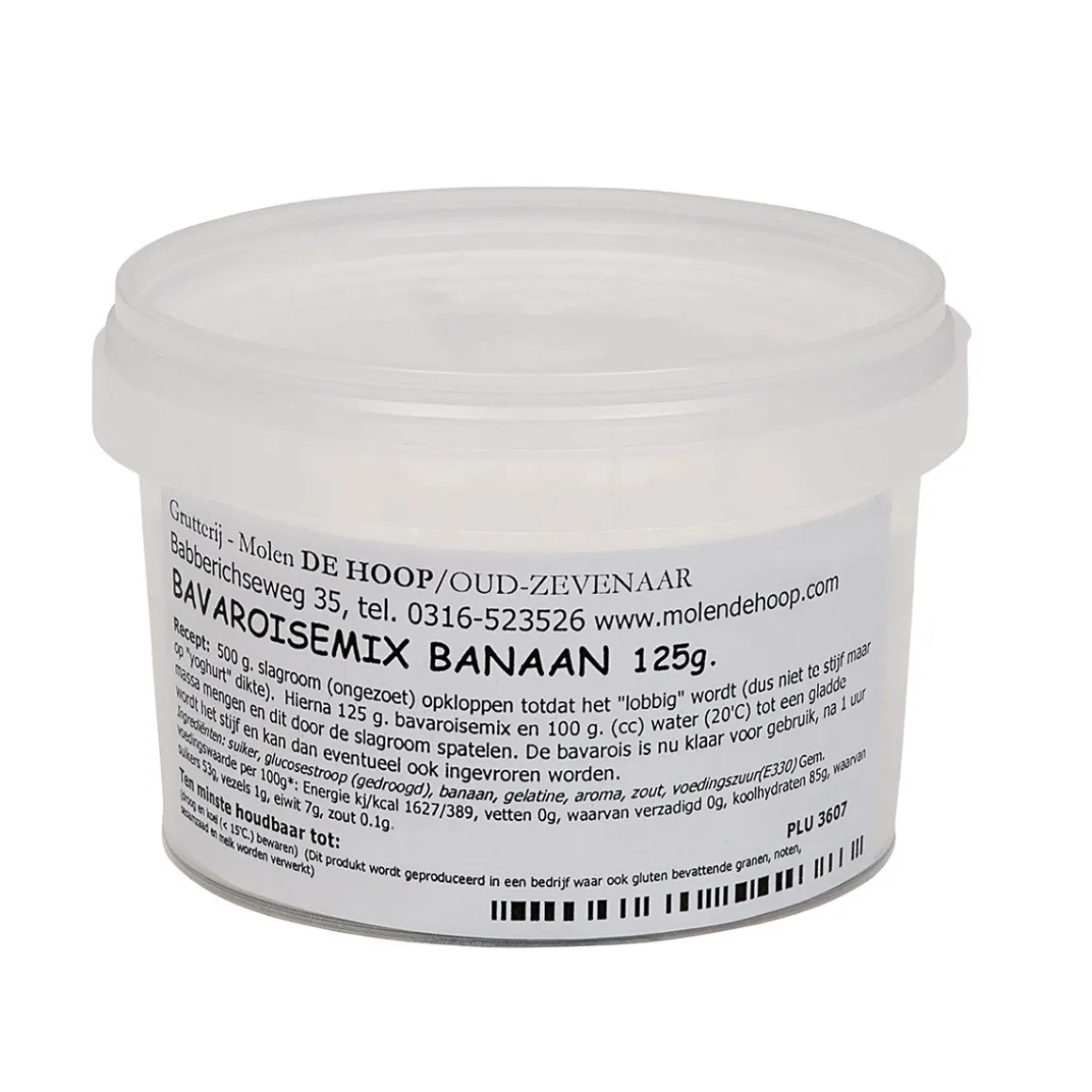 Met de mix voor banaanbavaroise maak je op eenvoudige wijze een verrukkelijke bavaroise met bananensmaak. Heerlijk voor verwerking in gebak of als dessert in combinatie met ijs.