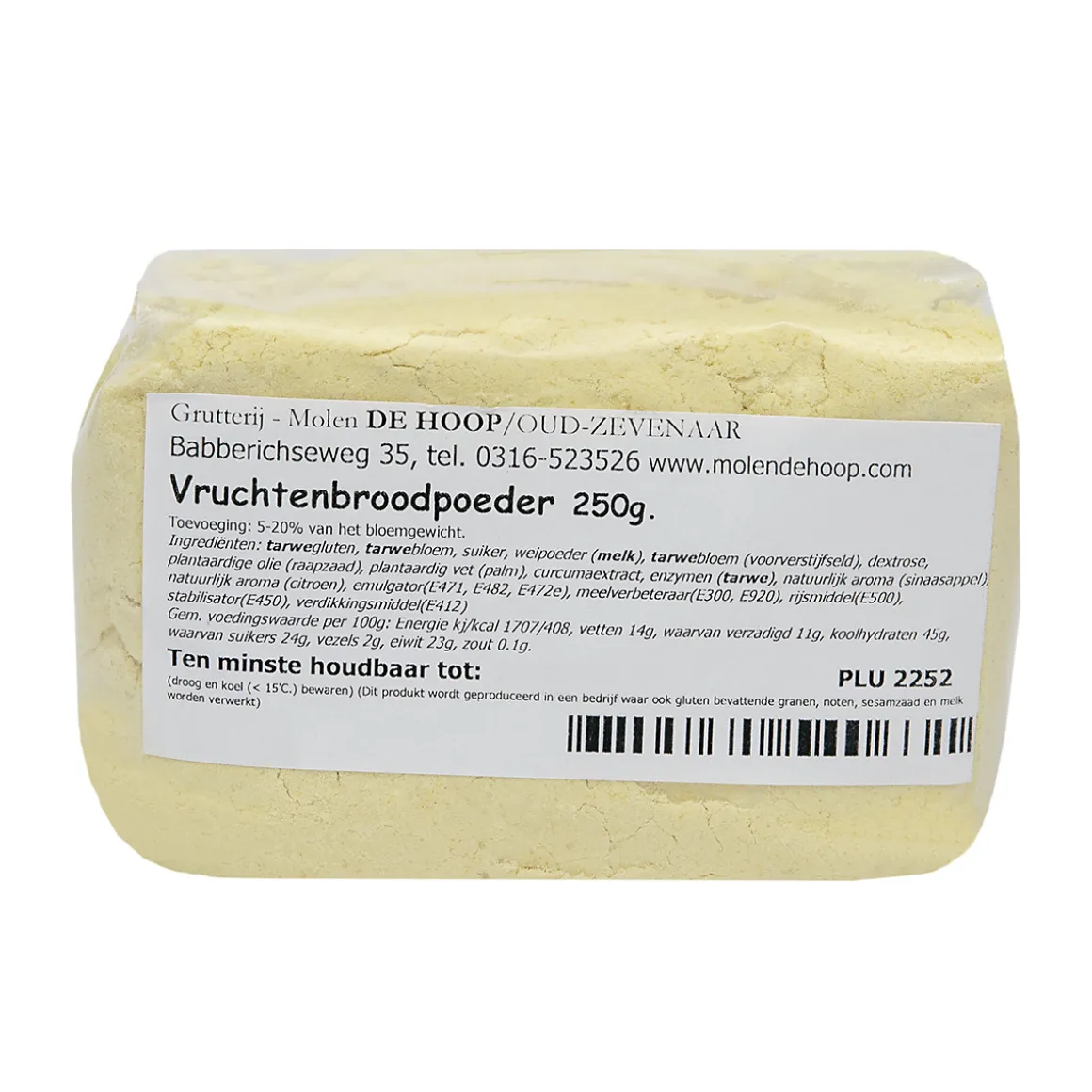 Wil je vruchtenbrood maken die net zo vers is als van de bakker, probeer dan eens deze Molen de Hoop Vruchtenbroodpoeder. Deze broodverbeteraar is uitstekend voor het maken van gevuld brood, zoals krenten/rozijnenbrood. Door deze broodverbeteraar droog het brood niet zo snel uit en smaakt het langer vers.