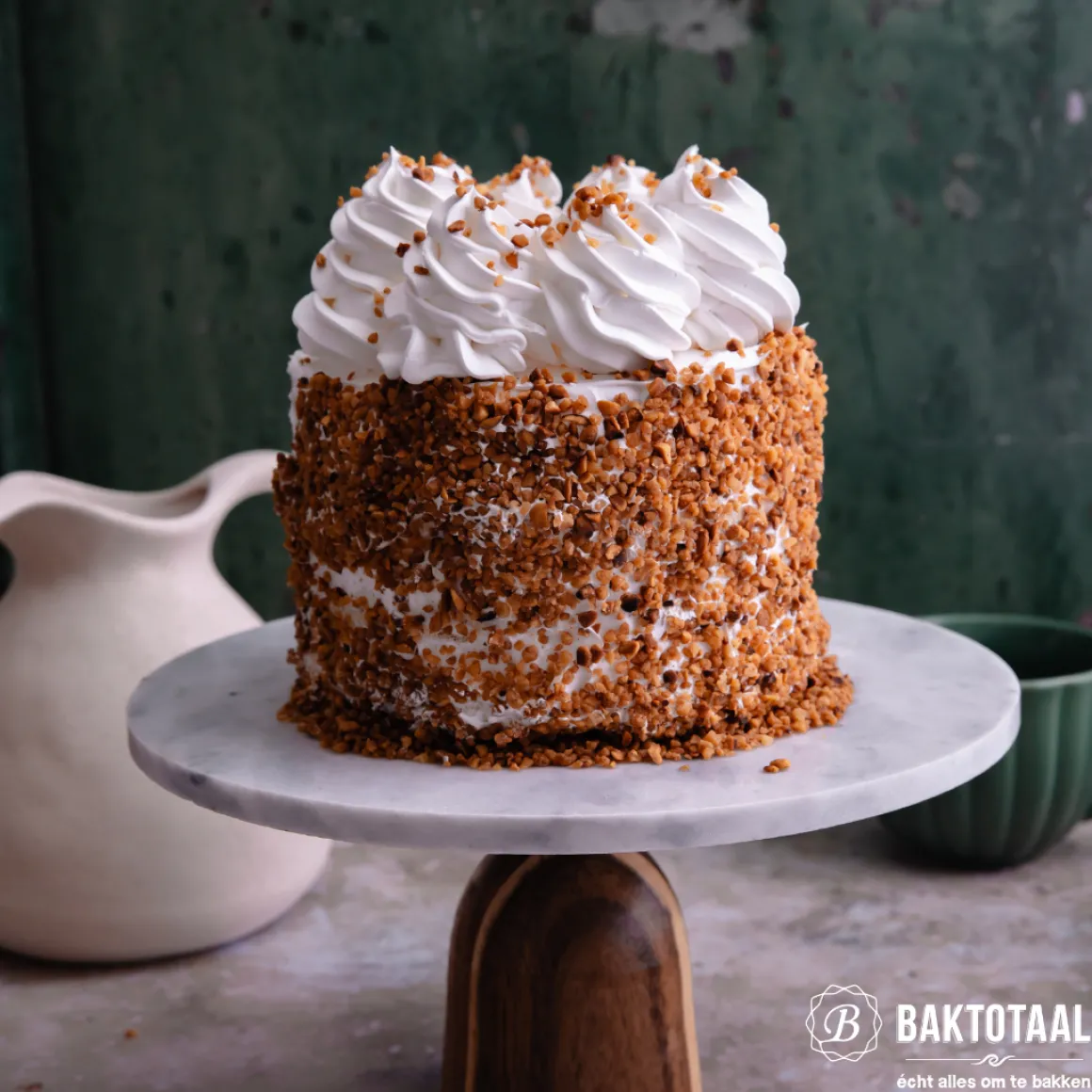 Gekaramelliseerde karamel en gebrande hazelnoten, een geweldige combinatie toch? Deze geweldige combinatie noem je ook wel ‘Nougatine’. Je kunt nougatine gebruiken ter decoratie van je slagroom- of mokkataart, ander gebak, ijs en desserts.