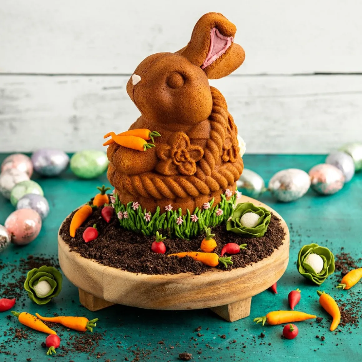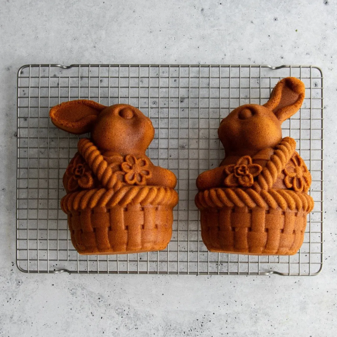 Met de Nordic Ware Paashaas in Mandje Bakvorm maak je van cake een gave paashaas in 3D vorm. Zo’n cake staat prachtig tijdens de paasbrunch op de paastafel. Met deze bakvorm bak je twee halve vormen, die je vervolgens aan elkaar kunt plakken met bijvoorbeeld botercrème en eventueel nog naar wens kunt decoreren.