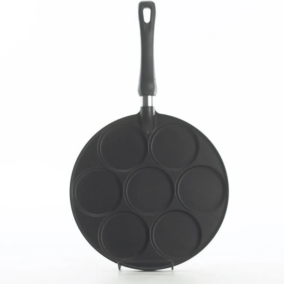 De pan heeft 7 holtes van elk Ø7,5cm voor een perfect ronde pancake als eindresultaat.