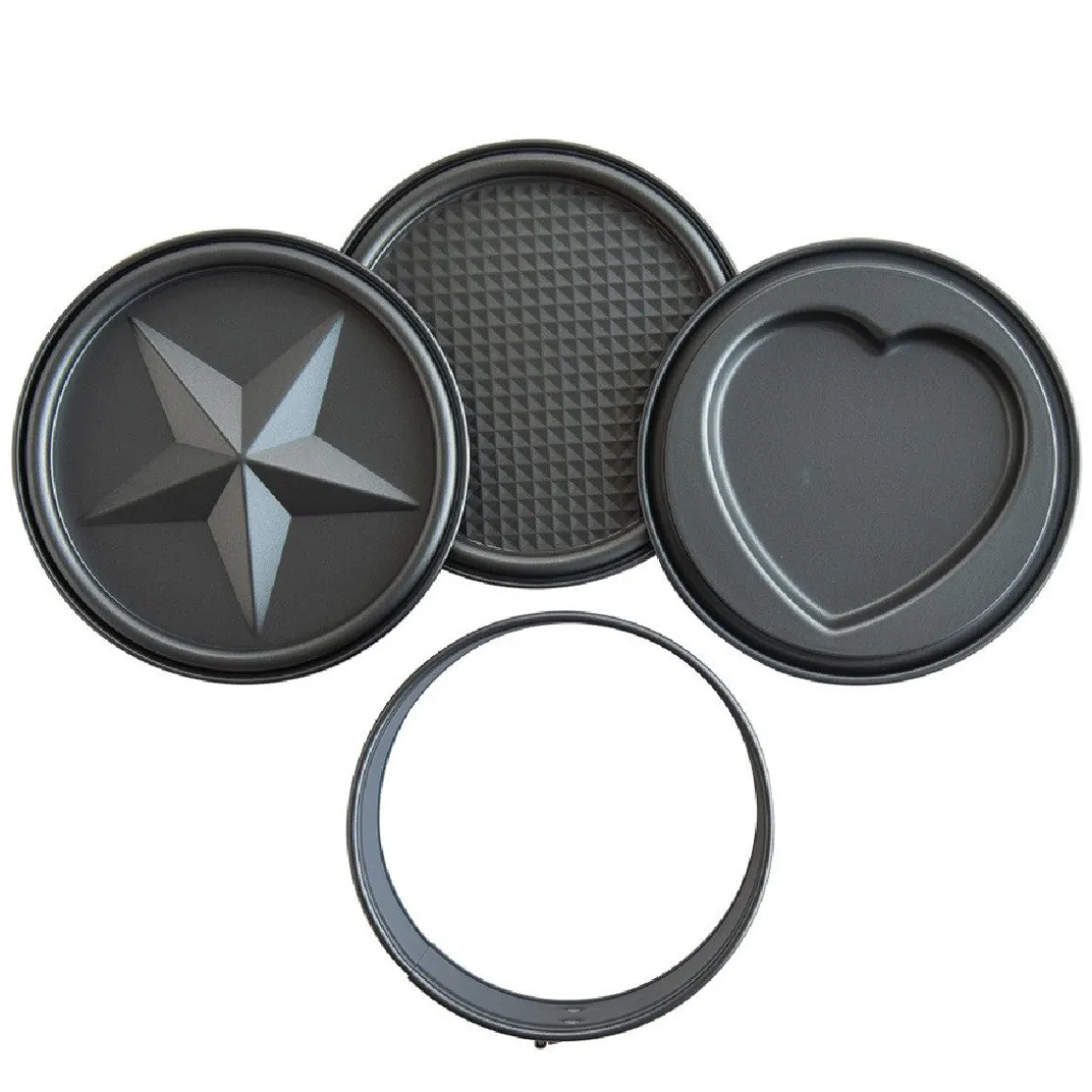 De Nordic Ware Springvorm Ø17,5cm Set/3 is een set van drie springvormen, prefect voor het bakken van verschillende taarten, cheesecakes en quiches. De set heeft 3 verwisselbare bodems, namelijk een ster, een hart en een normale bodem. De springvormen hebben een diameter van ca 17,5 centimeter en zijn gemaakt van gietijzeren aluminium, wat zorgt voor een gelijkmatige warmteverdeling en uitstekende bakresultaten. Deze set biedt de flexibiliteit om meerdere lagen taarten te bakken of om verschillende smaken tegelijk te bereiden.