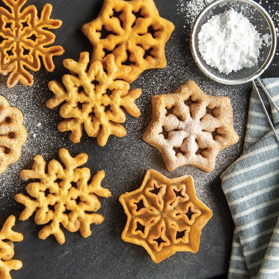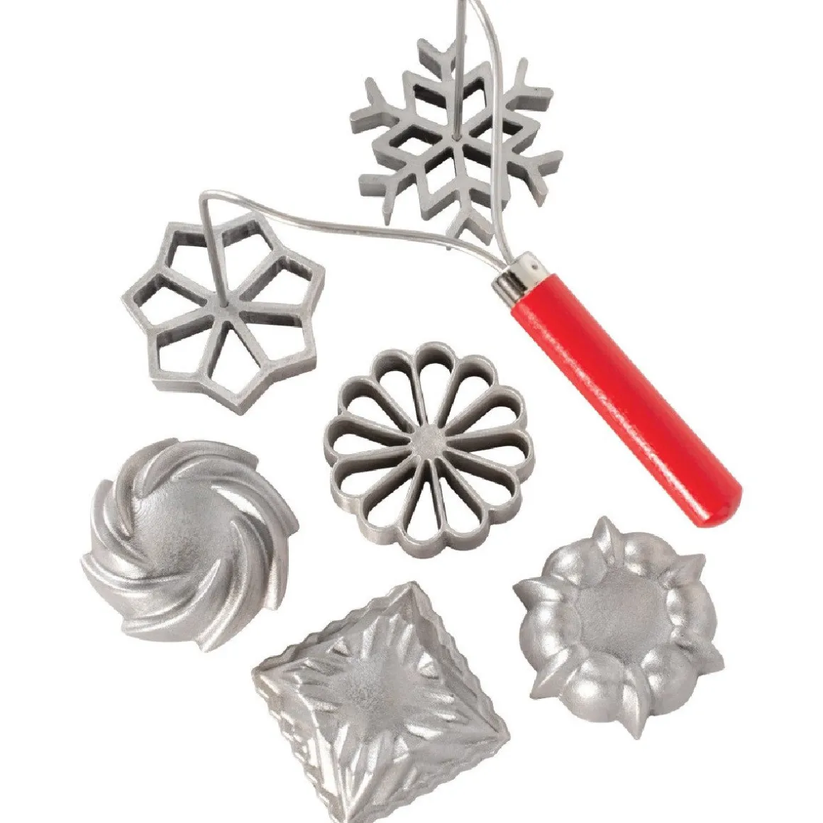 De Nordic Ware Swedish Rosette & Timbale Set is een complete bakset waarmee je traditionele Scandinavische lekkernijen zoals rosettes en timbales kunt maken. De set bestaat uit een handgreep met verwisselbare aluminium vormen die in heet beslag en olie worden gedoopt voor een heerlijk knapperig resultaat.