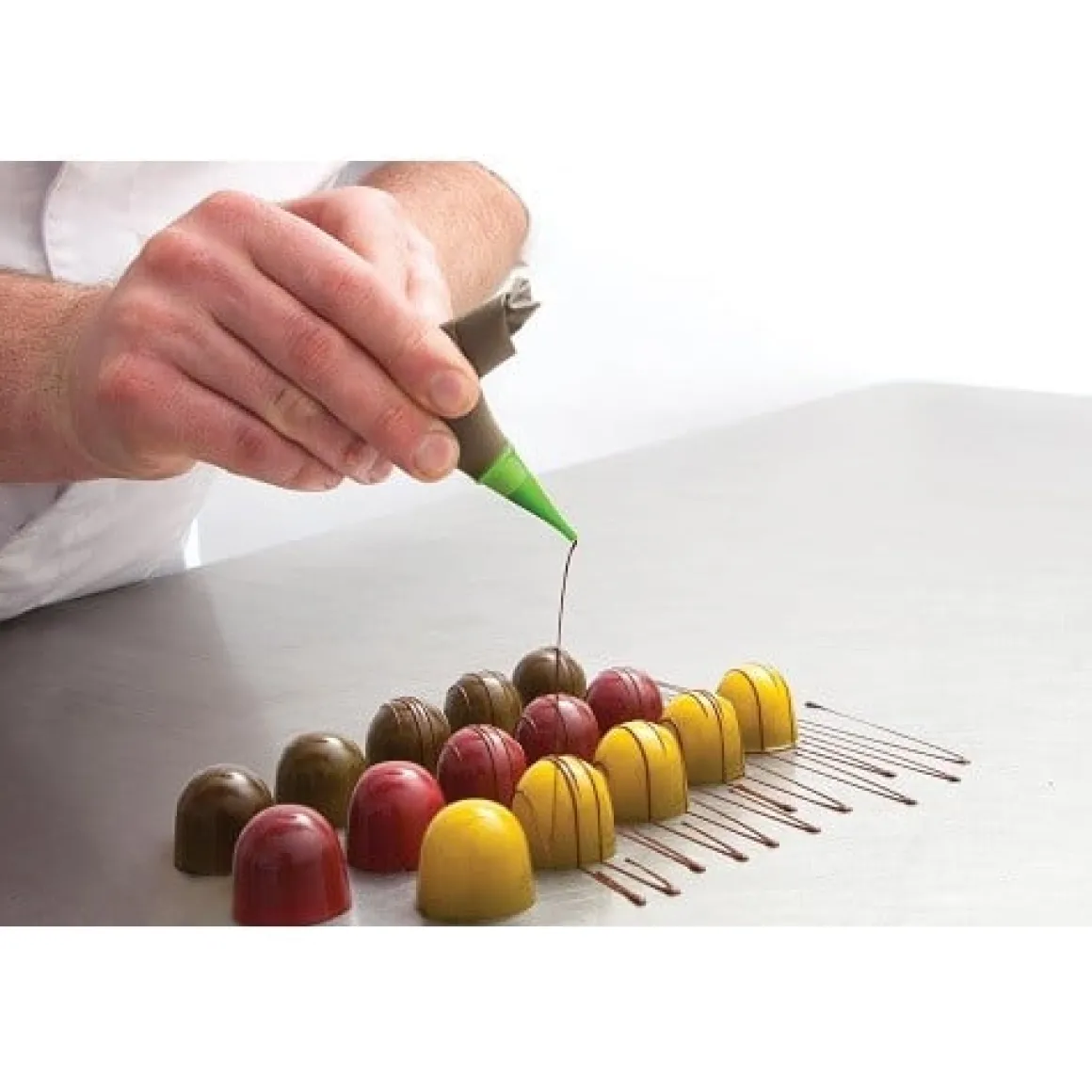 Het spuitmondje valt automatisch op zijn plaats in het zakje. Hierdoor is de Sweetliner binnen enkele seconden gebruiksklaar. De Sweetliner kan van te voren worden afgevuld, worden opgeborgen in de koelkast en worden verwarmd in de magnetron of au bain-marie. Doordat de Sweetliner net zo makkelijke hanteerbaar is als een pen, is het niet alleen geschikt voor de professional, maar kan ook de non-professional de mooiste en fijnste afwerkingen creëren met vloeibare vullingen.