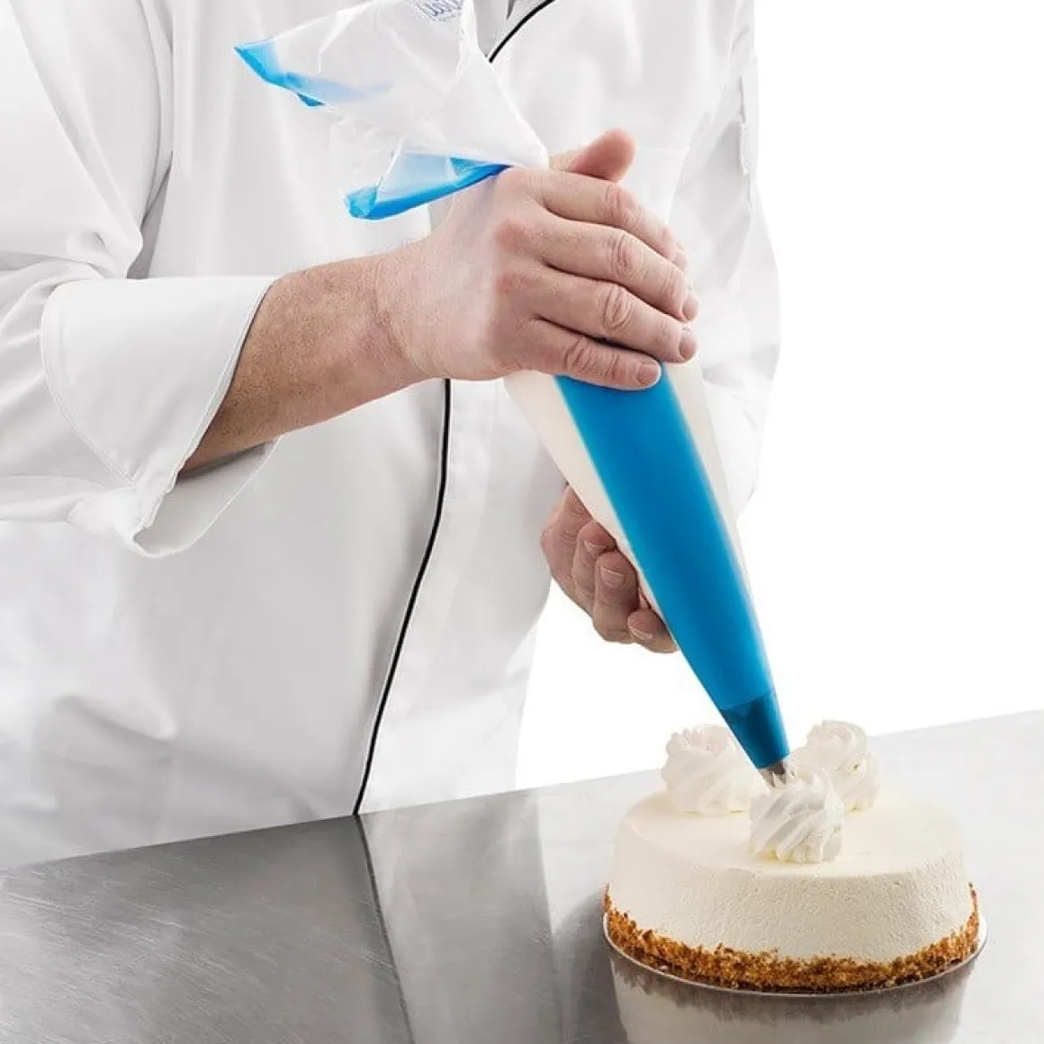 De One Way Wegwerp Spuitzak Masterline Blue is echt perfect voor het gebruik in een professionele keuken door de speciale ‘soft touch’ grip in combinatie met de gekleurde punt. De vaste multilaag-folie zorgt ervoor dat je moeiteloos urenlang op het hoogste niveau kunt blijven werken.