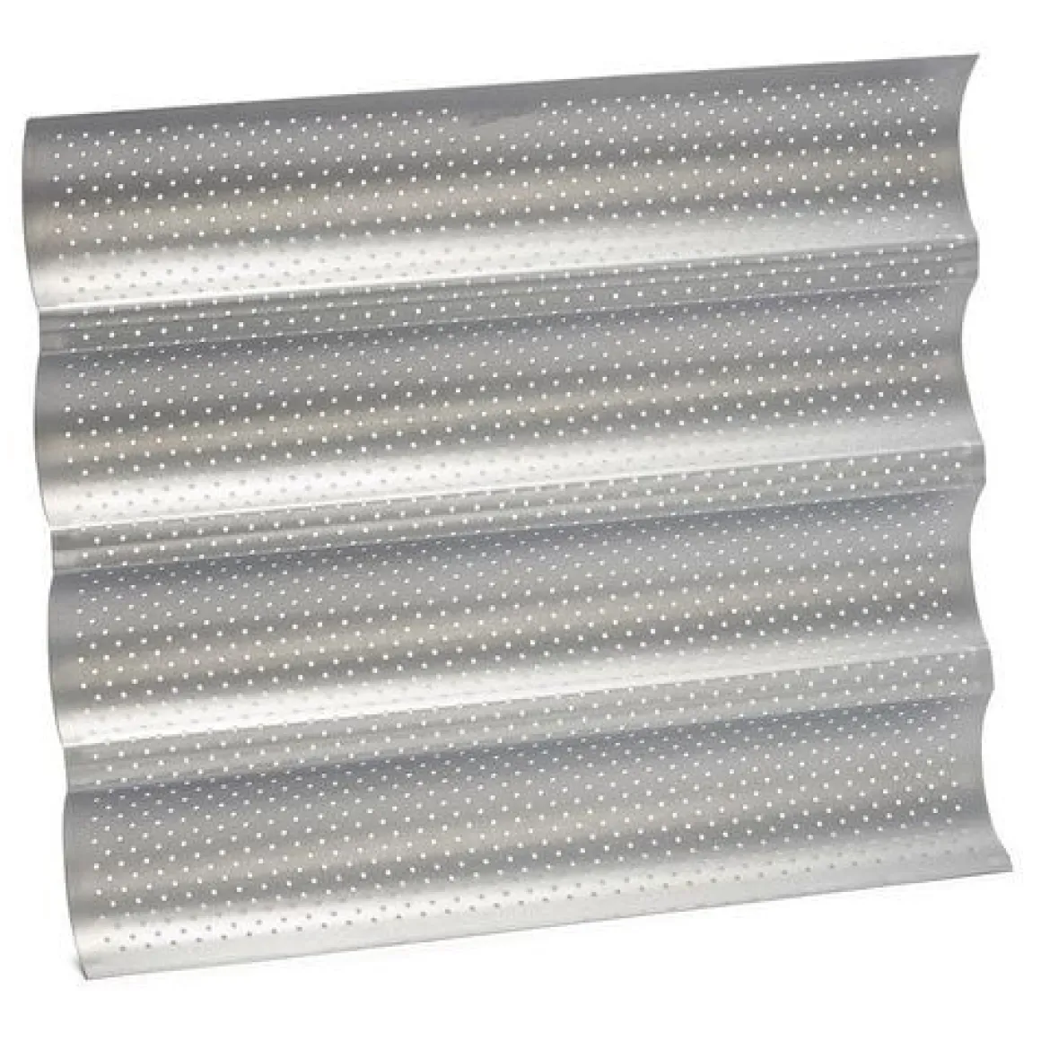 Patisse Stokbroodvorm 4-delig Silver-Top 38cm is een bakplaat speciaal voor het bakken van krokant stokbrood. Deze stokbroodplaat zorgt ervoor dat het deeg mooi zijn vorm houdt tijdens het rijzen en het bakken. De stokbroodnetten zijn geperforeerd. Deze stokbroodvorm bevat 4 rijen, met elk een lengte van 380mm.Verder bakvorm is bestand tegen temperaturen tot 230°C.