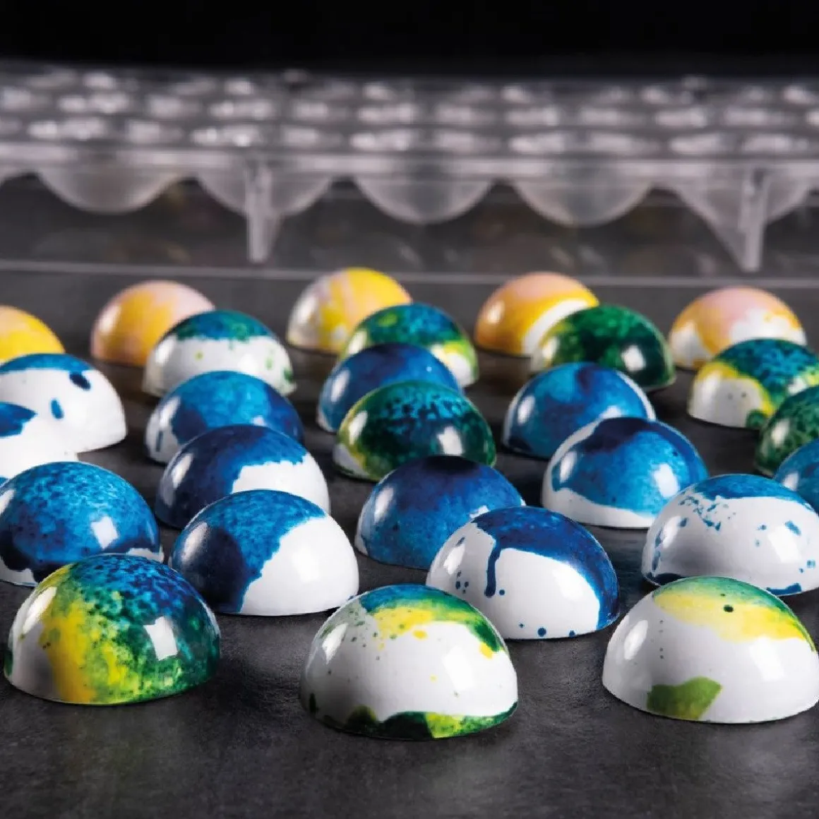 Met de Pavoni Bonbonvorm Halve Bol (24x) Ø30x15mm kun je maar liefst 24 halve bolletjes van chocolade maken. Vervolgens kun je jouw zelfgemaakte chocoladedecoratie gebruiken voor het decoreren van voorgerechten, hoofgerechten, desserts en diverse soorten gebak.