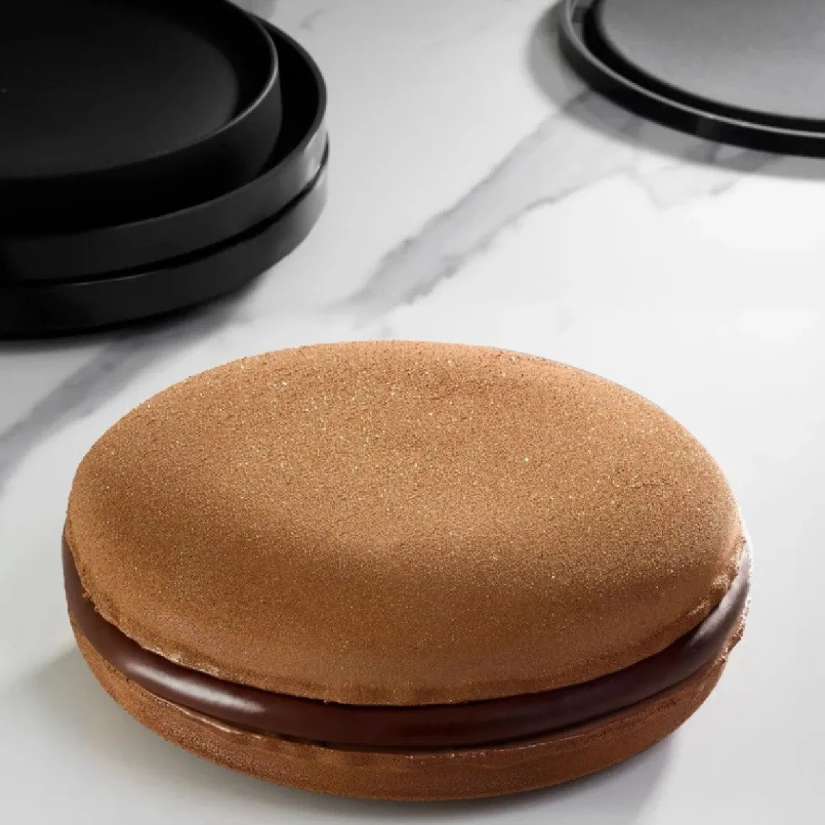 Met de set kun je allerlei creaties maken; vul de lagen met bijvoorbeeld mousse, biscuit, ganache of ijs en werk af met velvet spray of glazuur. Het resultaat is een macaron cake die ideaal is bij feestelijke gelegenheden of als verrassend dessert.