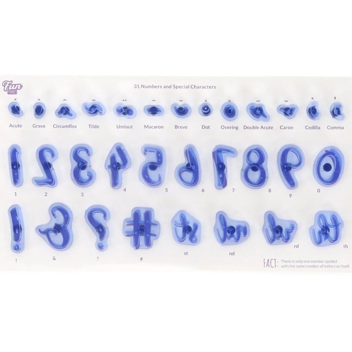 Handige uitstekerset van het merk PME. Deze Fun Fonts set bevat cijfers en speciale (lees)tekens. Het voordeel van deze stevige stekers is dat het gemaakt is van transparant blauwkleurig plastic, zodat je goed kunt zien waar je wat uitsteekt.