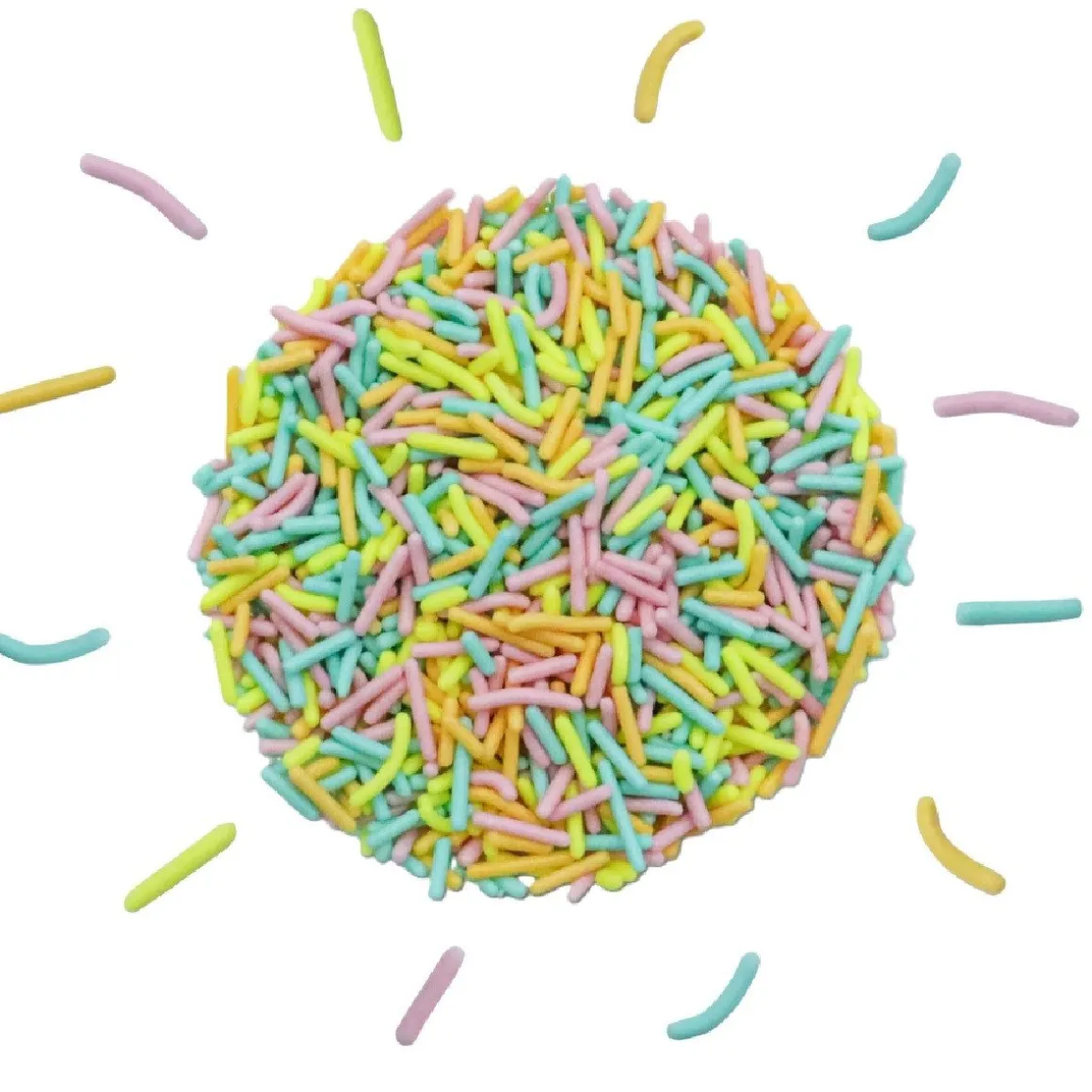 Geef een vrolijke uitstraling aan je baksels met de PME Hagelslag Mix Pasen 60g. In dit potje zit 60 gram hagelslag met een fleurige pastel kleur. De hagelsag heeft onder andere de kleuren groen, geel, blauw en roze. Een perfecte mix om al je paasbaksels mee te versieren.